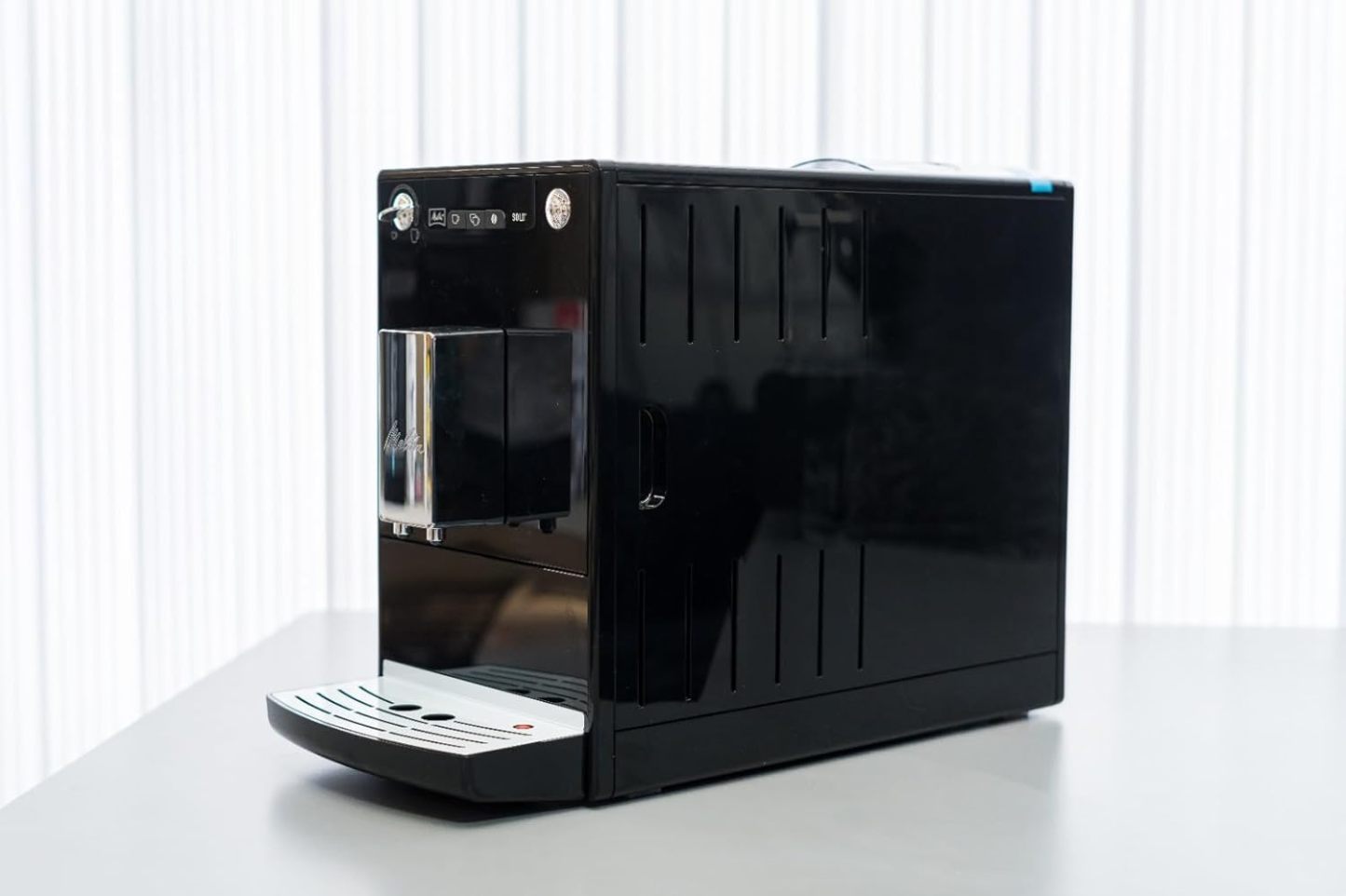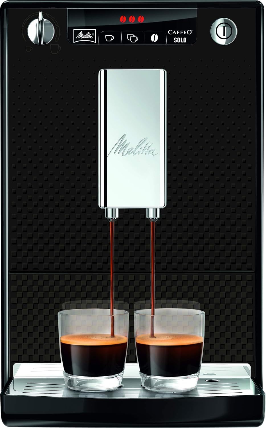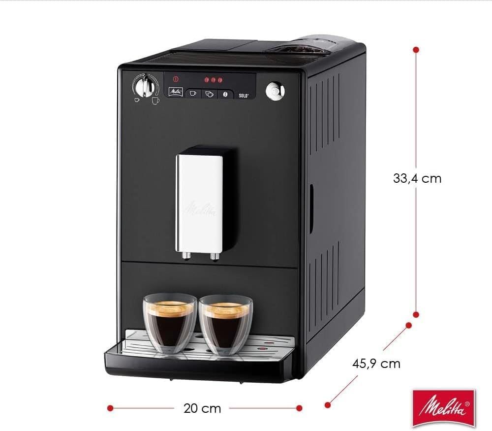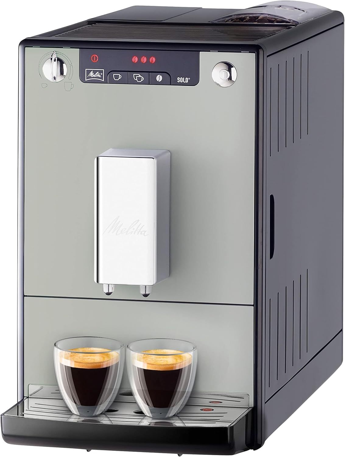 Melitta Solo - Kaffeevollautomat mit höhenverstellbarem Auslauf, kleine Kaffeemaschine mit abnehmbarem Wassertank, für z. B. Espresso oder Café Crème, silber