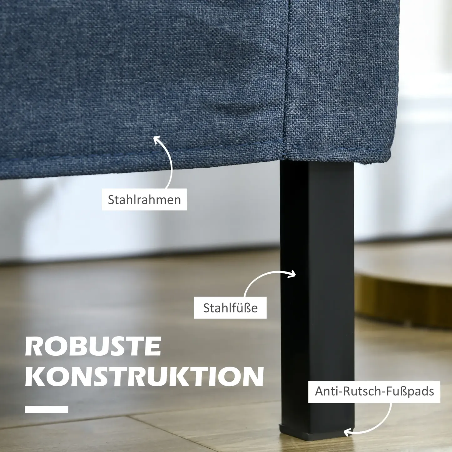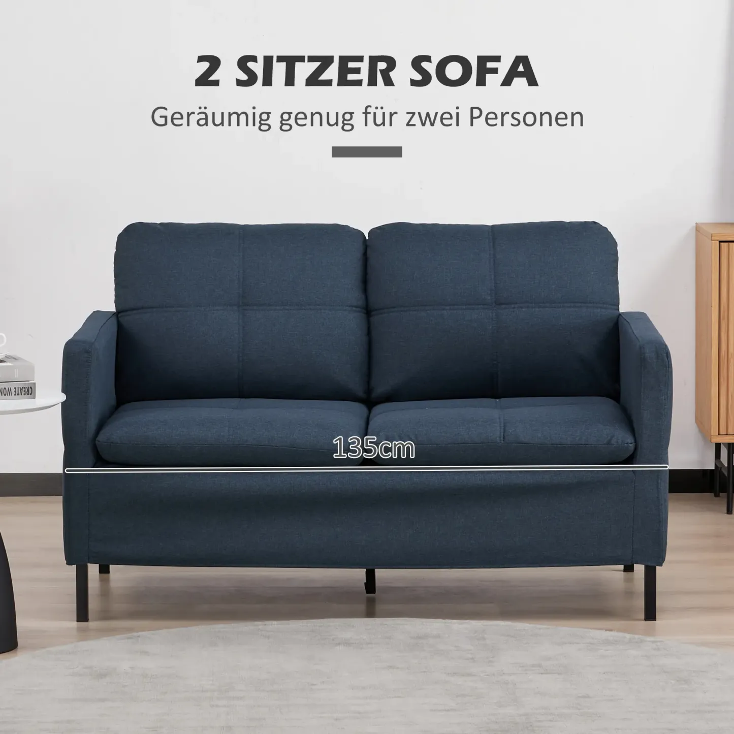 HOMCOM 2-Sitzer Sofa mit Leinenoptik & Stahlbeinen, Dunkelblau