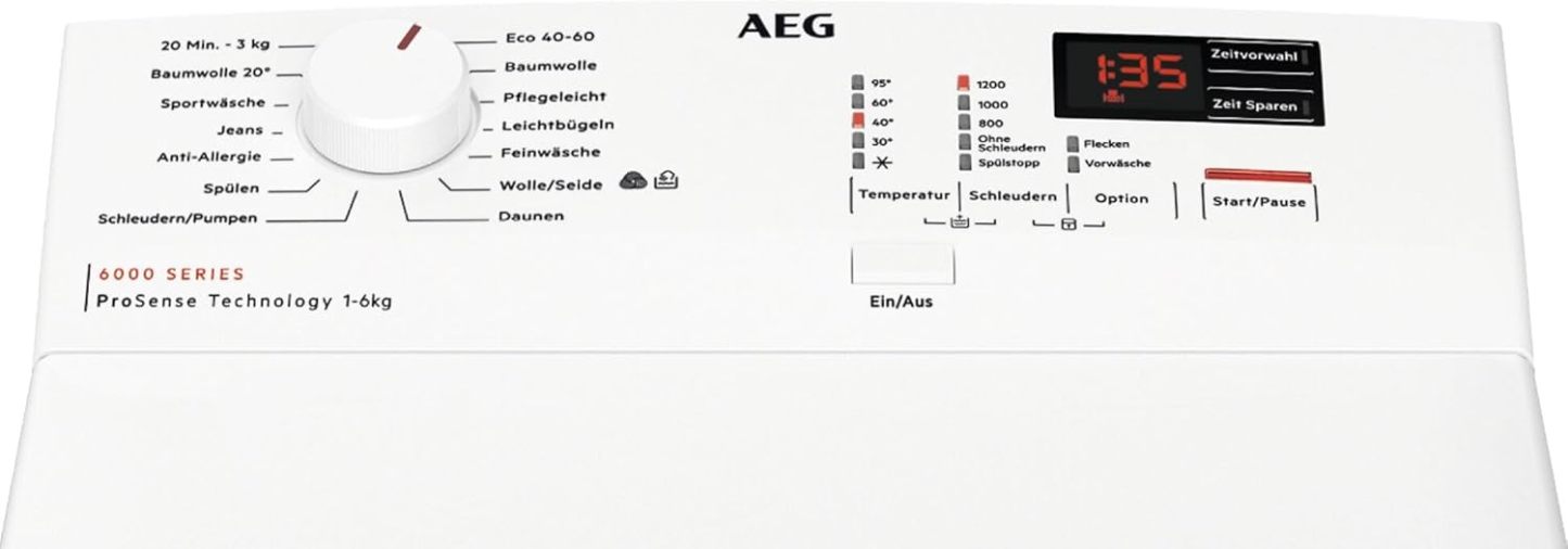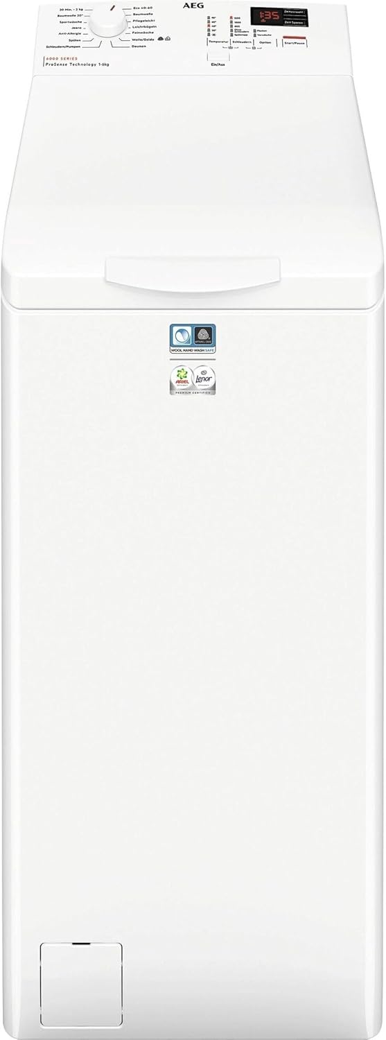AEG Waschmaschine Toplader, Serie 6000 ProSense: Mengenautomatik, 6 kg, EEKL A, SoftOpening Trommeldeckelöffnung, Wasserschutzalarm, Wasserstoppschlauch, Inverter Motor, 1400 U/min, LTR6A41460