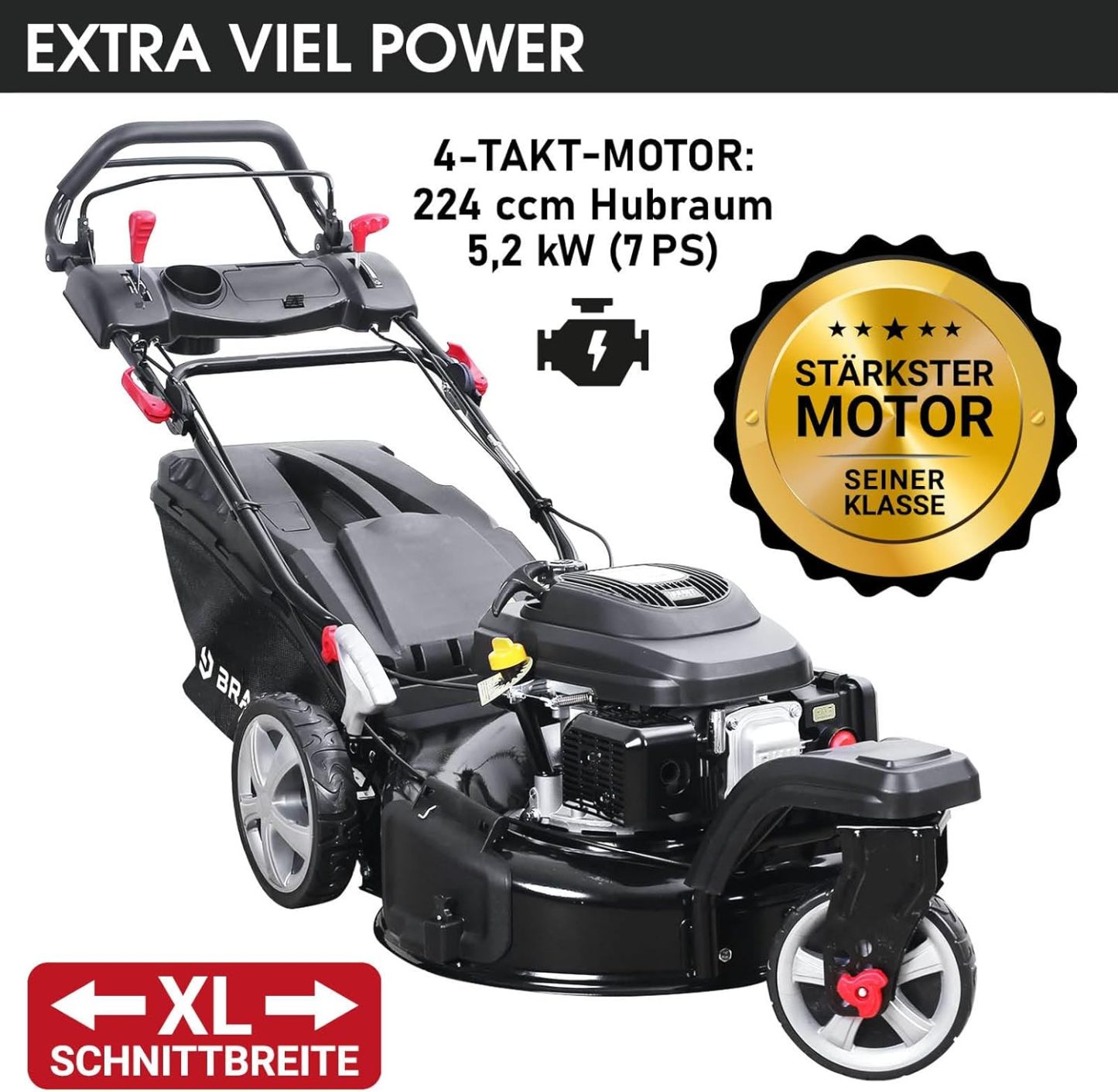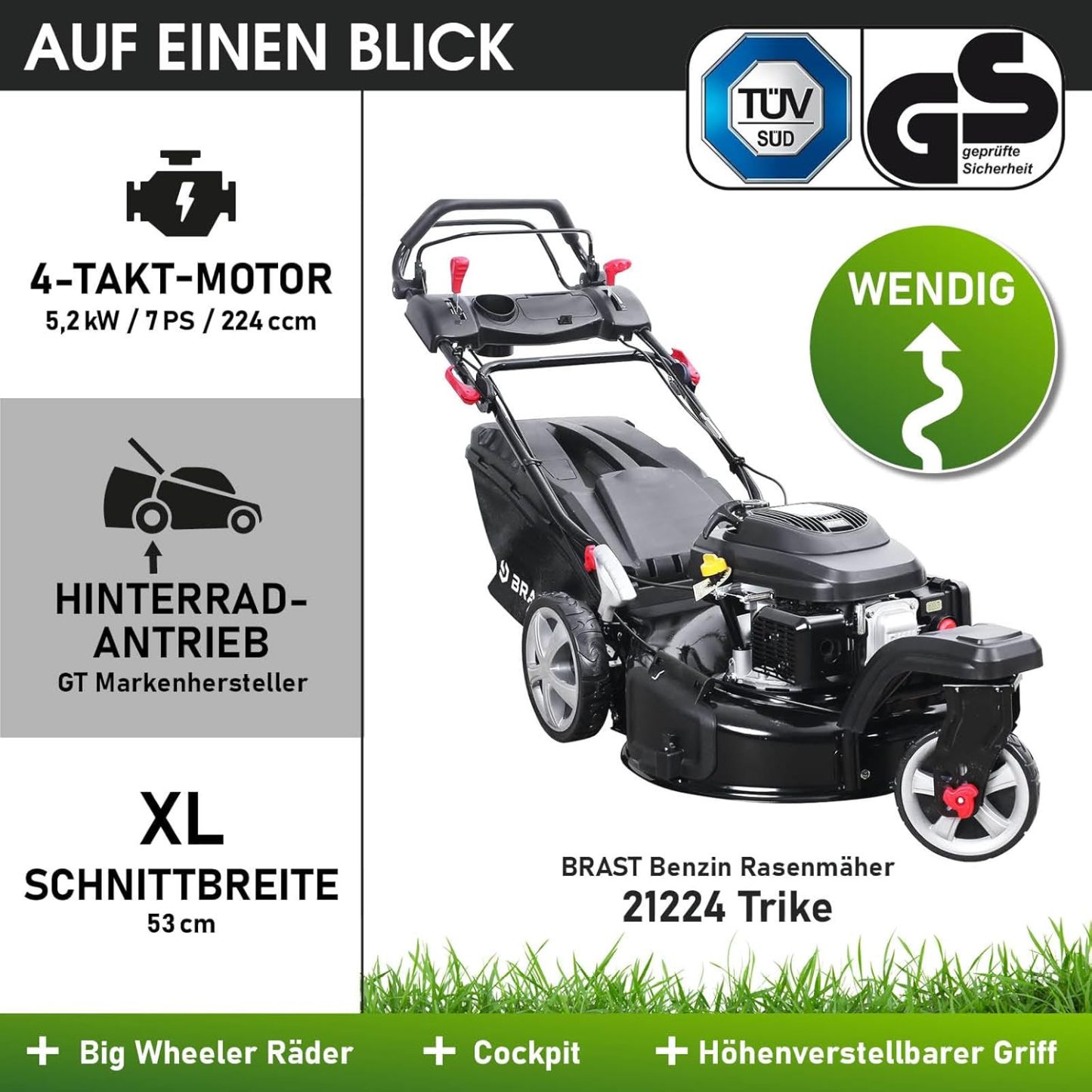 BRAST® Benzin Rasenmäher Trike mit Antrieb | 5,2kW(7PS) | 53cm Schnittbreite | viele Modelle | TÜV | 4 Takt OHV Motor | 30-80mm Schnitthöhe | 60L Fangkorb | Stahlgehäuse | Speed