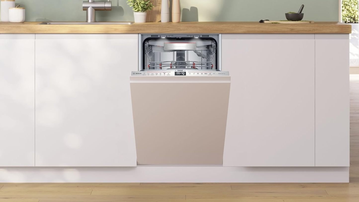 Bosch SPV2IKX10E Serie 2 Smarter Geschirrspüler vollintegriert, 45 cm breit, Besteckkorb, Extra Trocknen auf Knopfdruck, InfoLight roter Lichtpunkt am Boden, AquaStop Schutz gegen Wasserschäden, Weiß