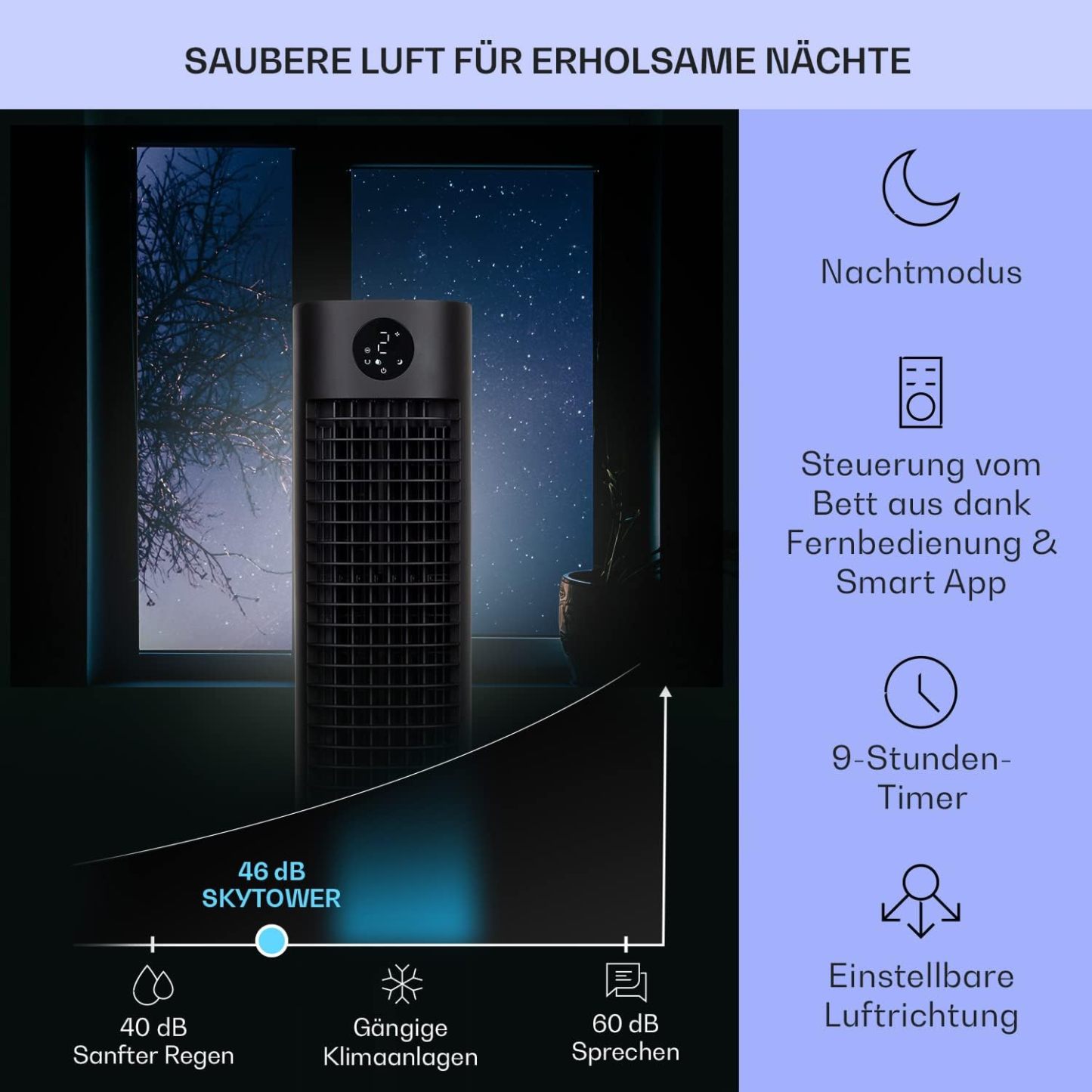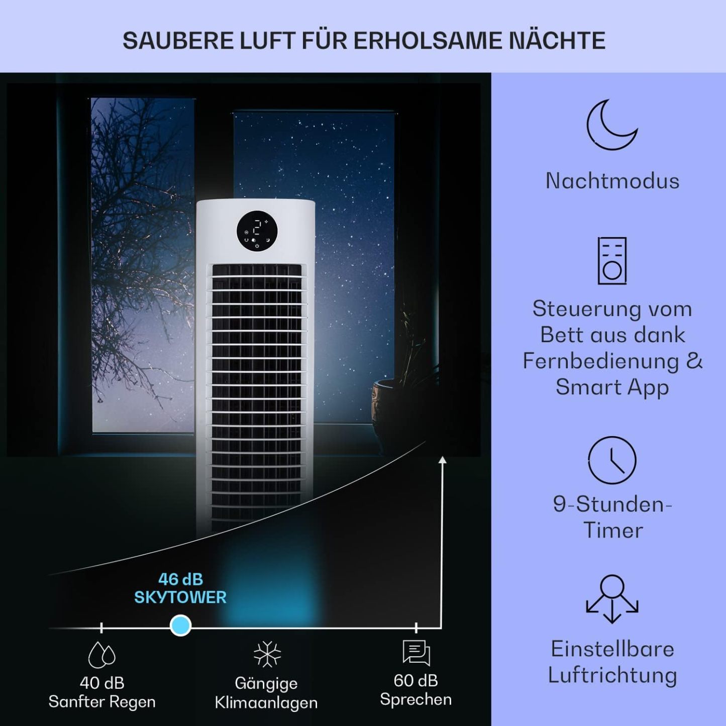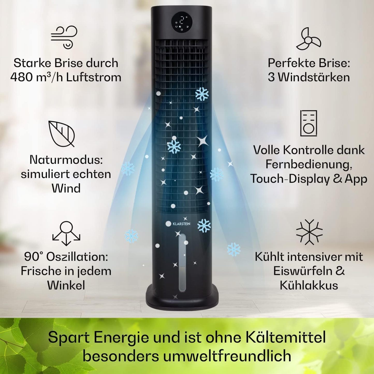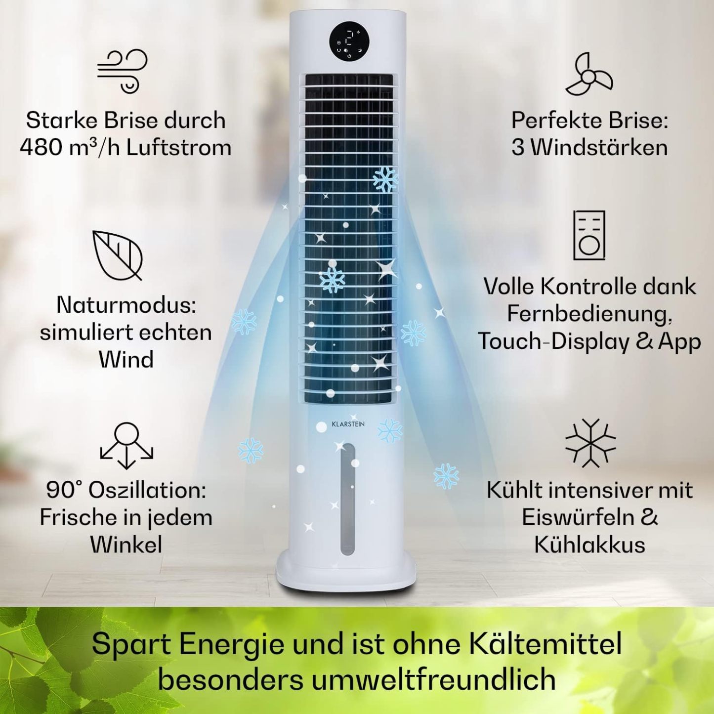 Klarstein Luftkühler mit Wasserkühlung, 5-in-1 Verdunstungskühler, Luftbefeuchter, Ventilator & Luftreiniger, Mobile Klimageräte Luftkühler mit App-Steuerung, 80W Air Cooler, 462m³/h Luftstrom, Weiß