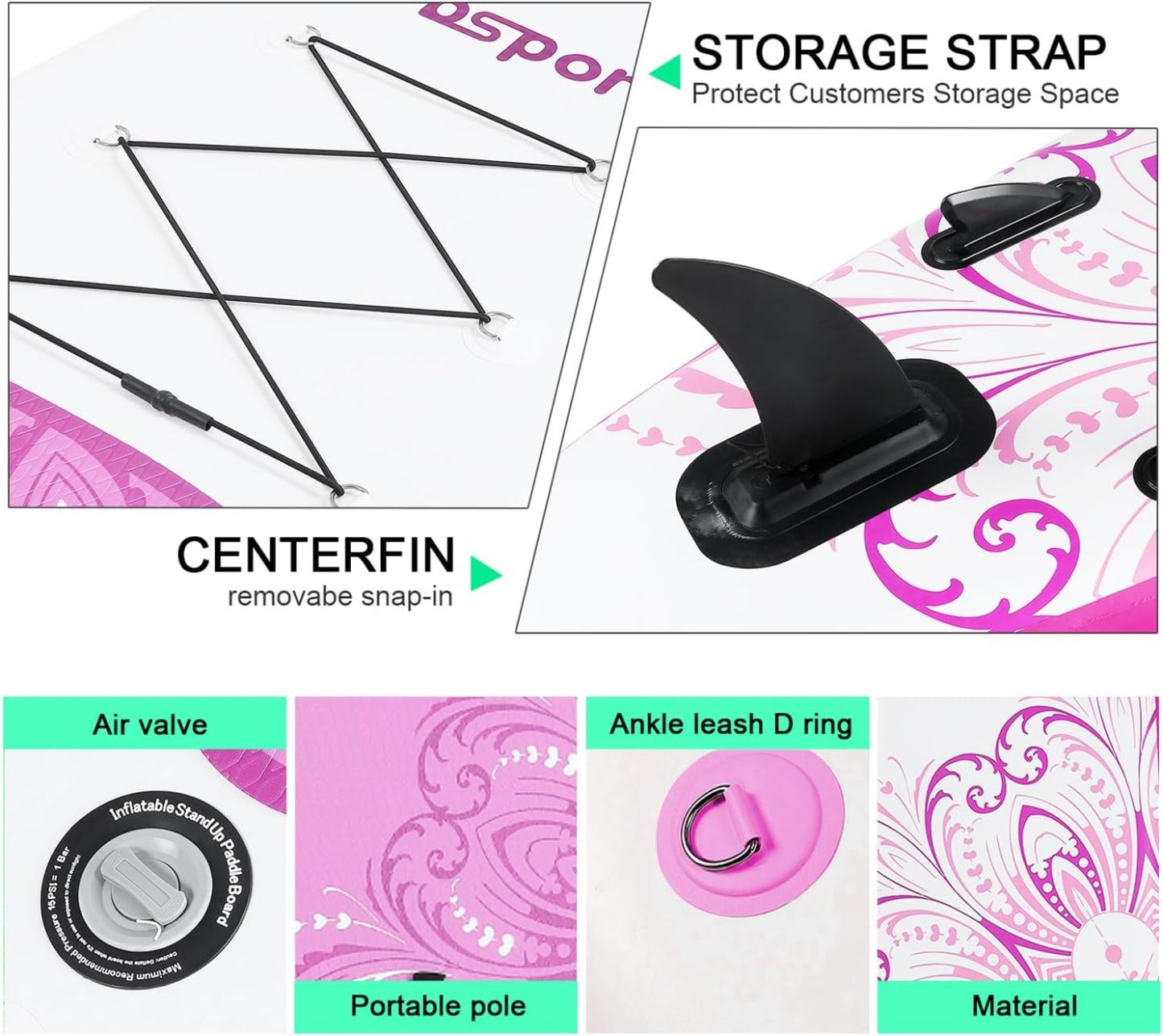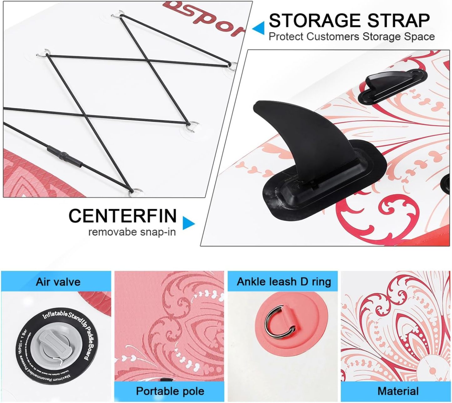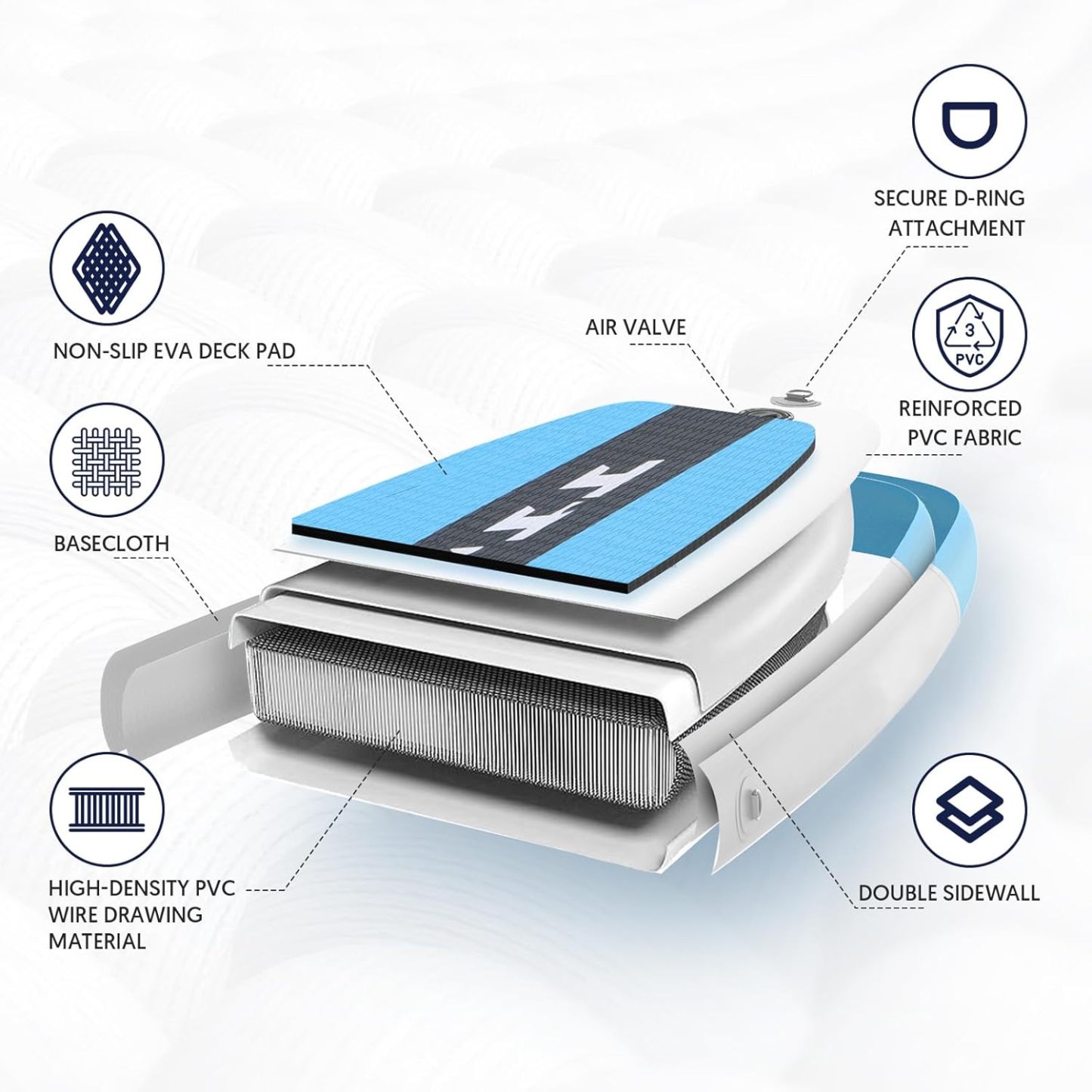 Premium-Stand-Up-Paddle-Board, Yoga-Board mit strapazierfähigem SUP-Zubehör und Tragetasche | Breiter Stand, Surf-Kontrolle, rutschfestes Deck, Leine, Paddel und Pumpe für Jugendliche und Erwachsene