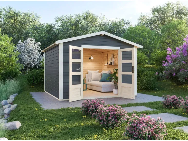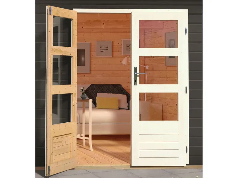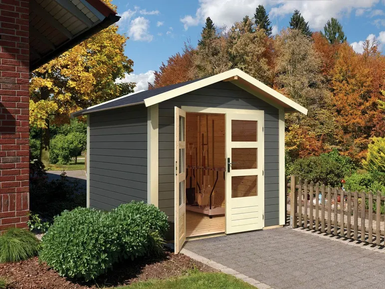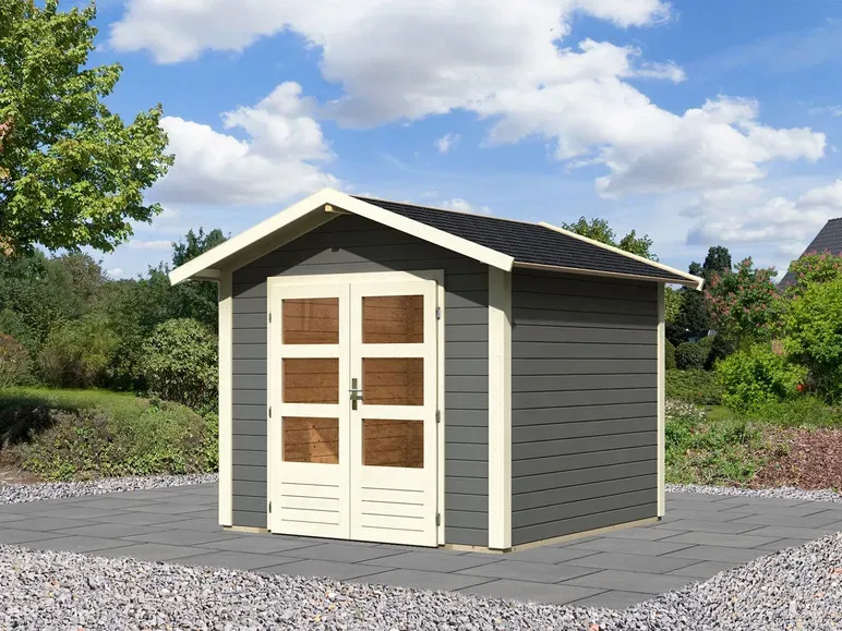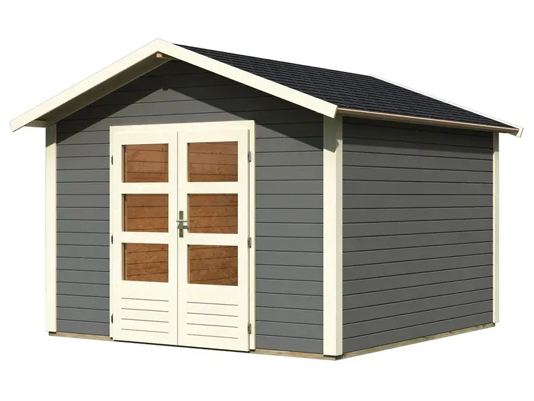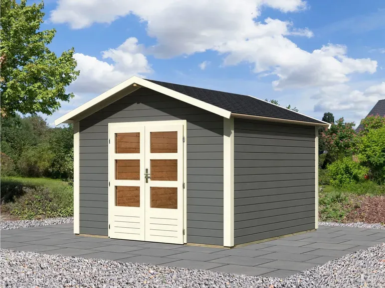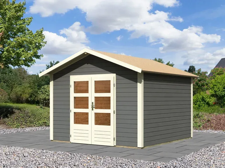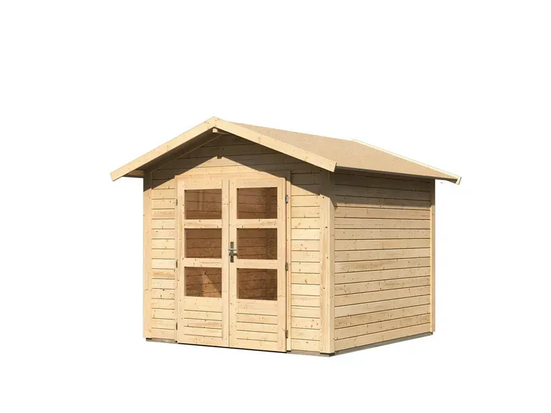 Karibu Gartenhaus »Carlos«, Satteldach, Witterungsschutz, Tür mit 3 Lichtausschnitten