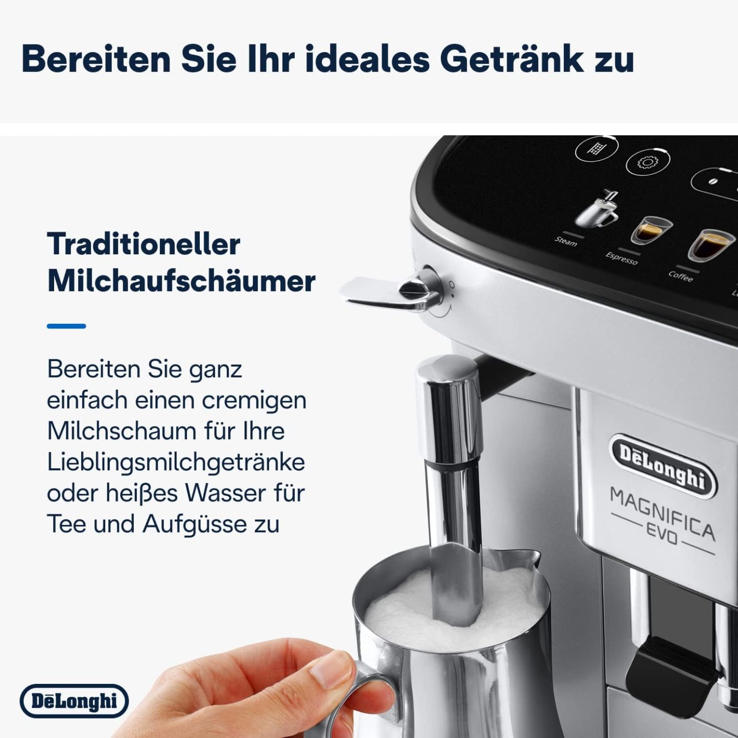 De'Longhi Magnifica Evo ECAM 292.33.SB Kaffeevollautomat mit Milchaufschäumdüse, 5 Direktwahltasten für Espresso,Kaffee und Kaffeespezialitäten, intuitives Bedienfeld,2-Tassen-Funktion,Silber/Schwarz