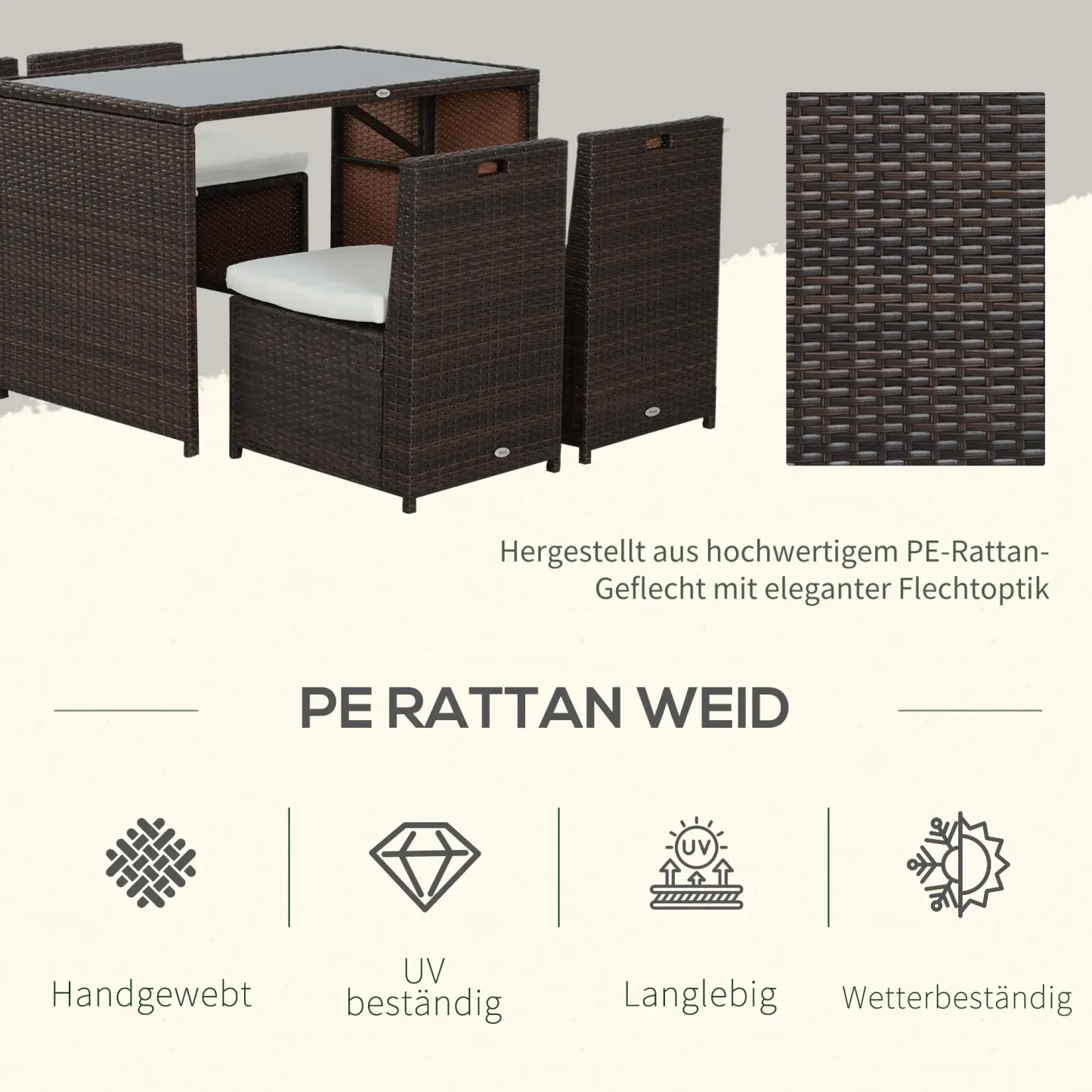 Outsunny Polyrattan Gartenmöbelset 5-tlg. wetterfest UV-beständig