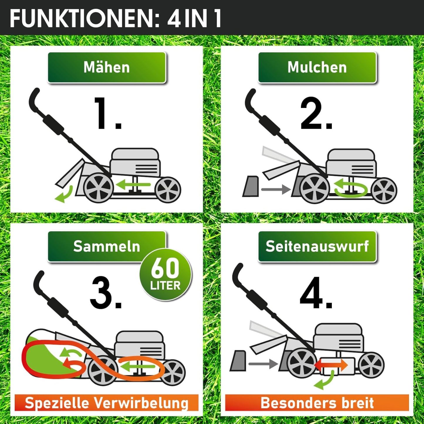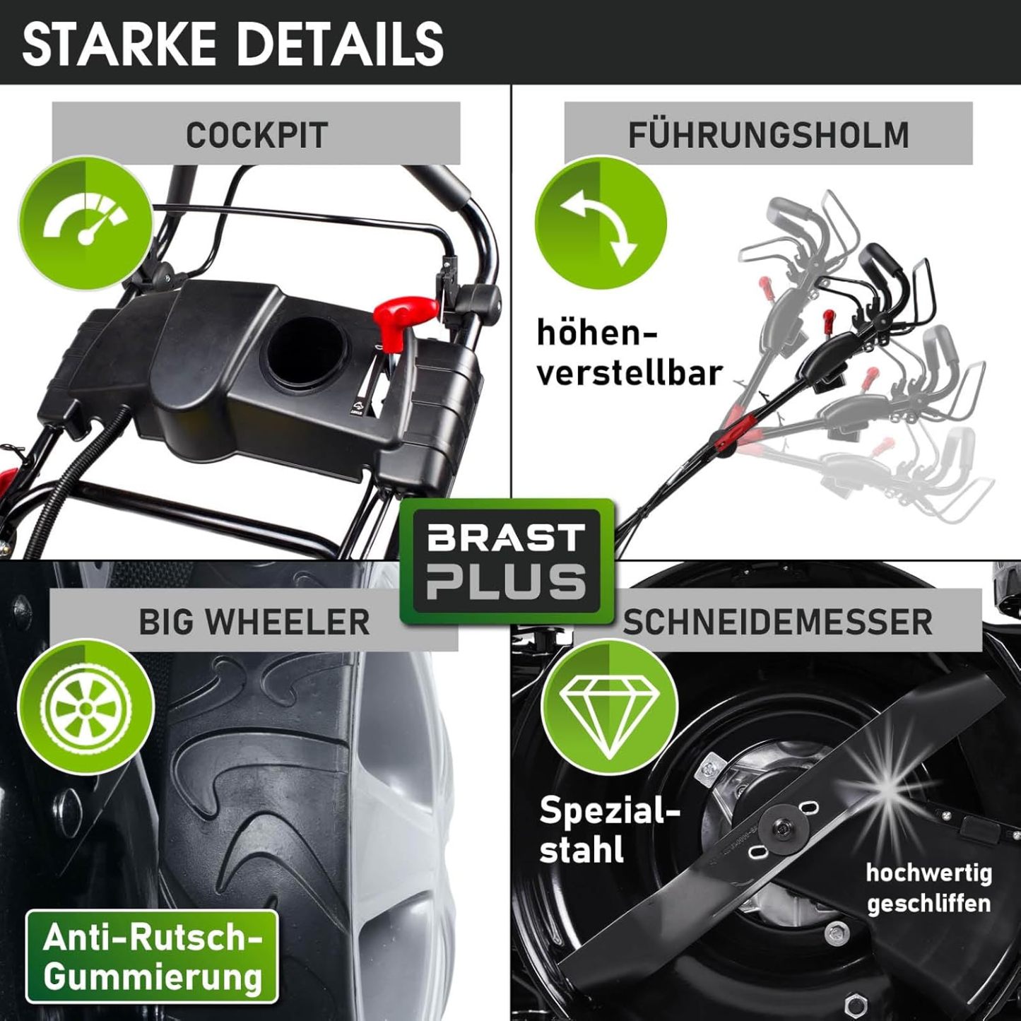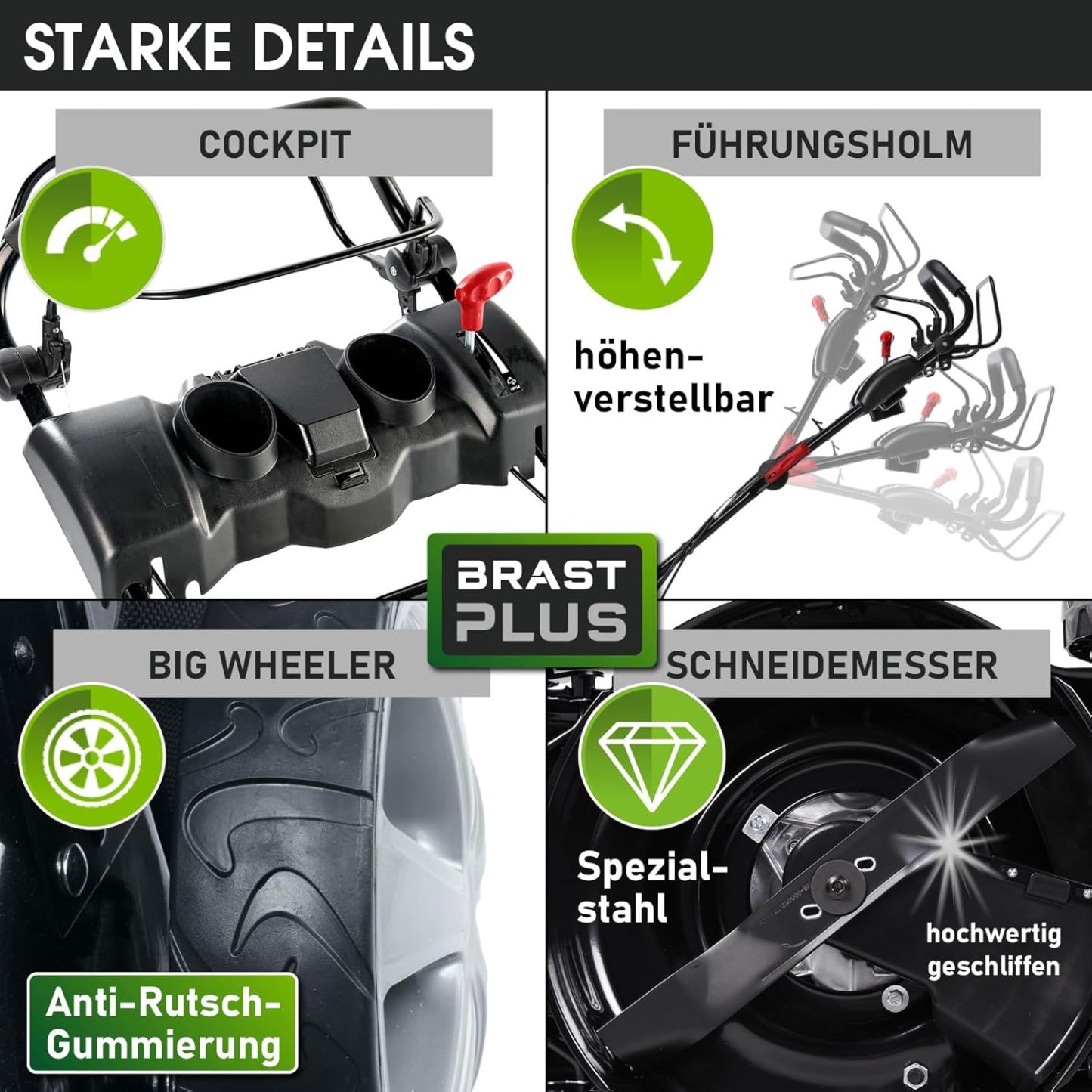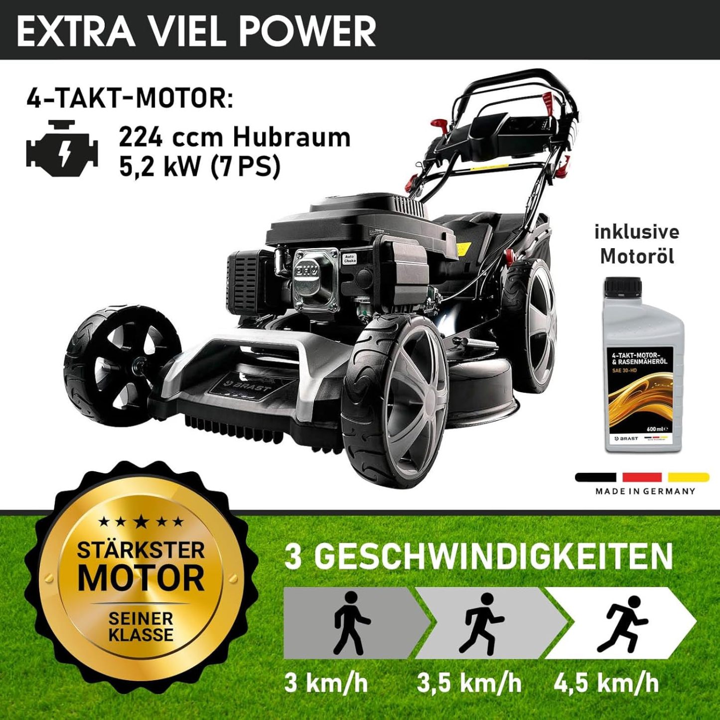 BRAST Benzin Rasenmäher mit Antrieb | 5,2kW (7PS) | 55cm Schnittbreite | viele Modelle | TÜV | 30-80mm Schnitthöhe | 60L Fangkorb | 4 Takt OHV Motor | Stahlgehäuse | Power