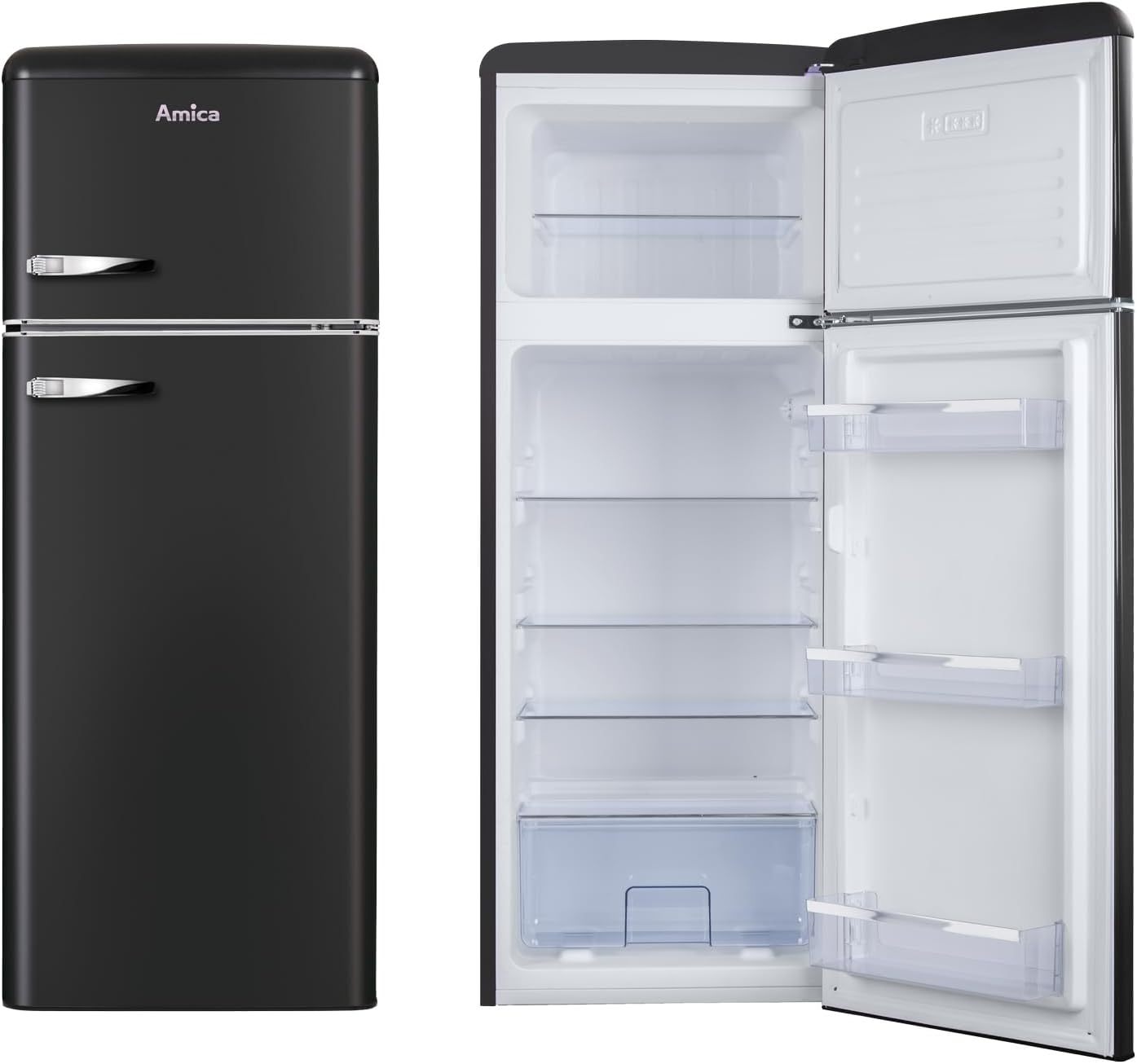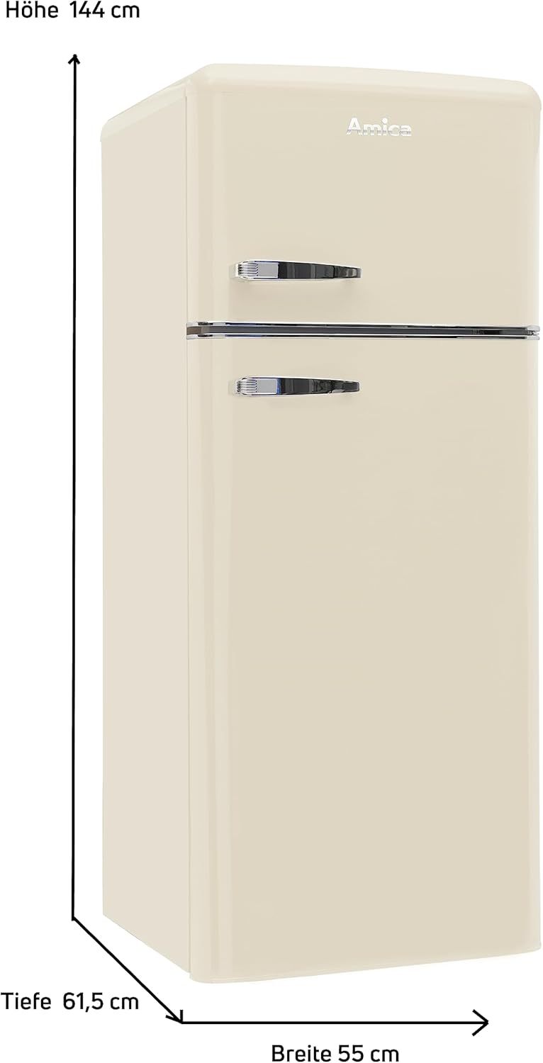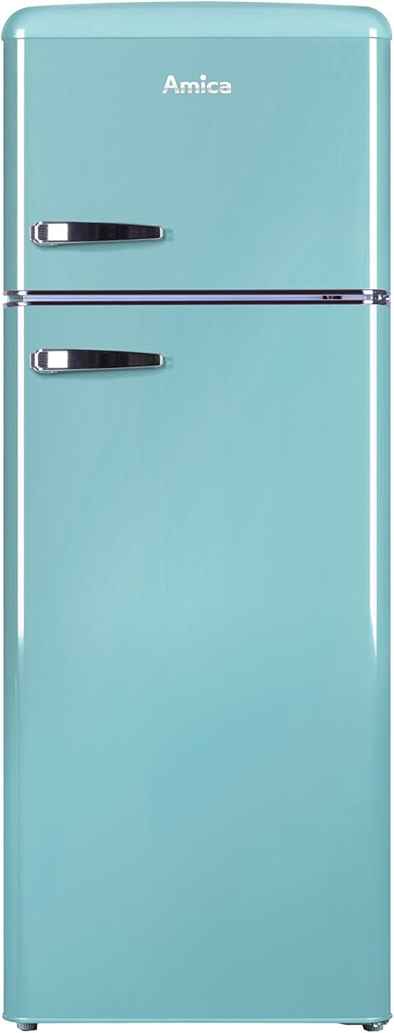 Amica KGC 15632 T Retro Kühl-/Gefrierkombination / Ice Blue (Türkis) / 144cm (H) x 55cm (B) x 62cm (T) / Retro-Design / Kühlschrank mit Gefrierfach