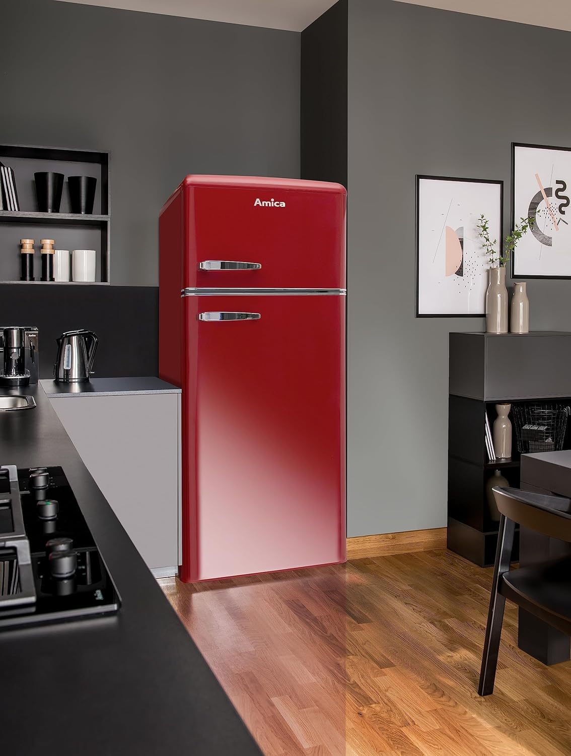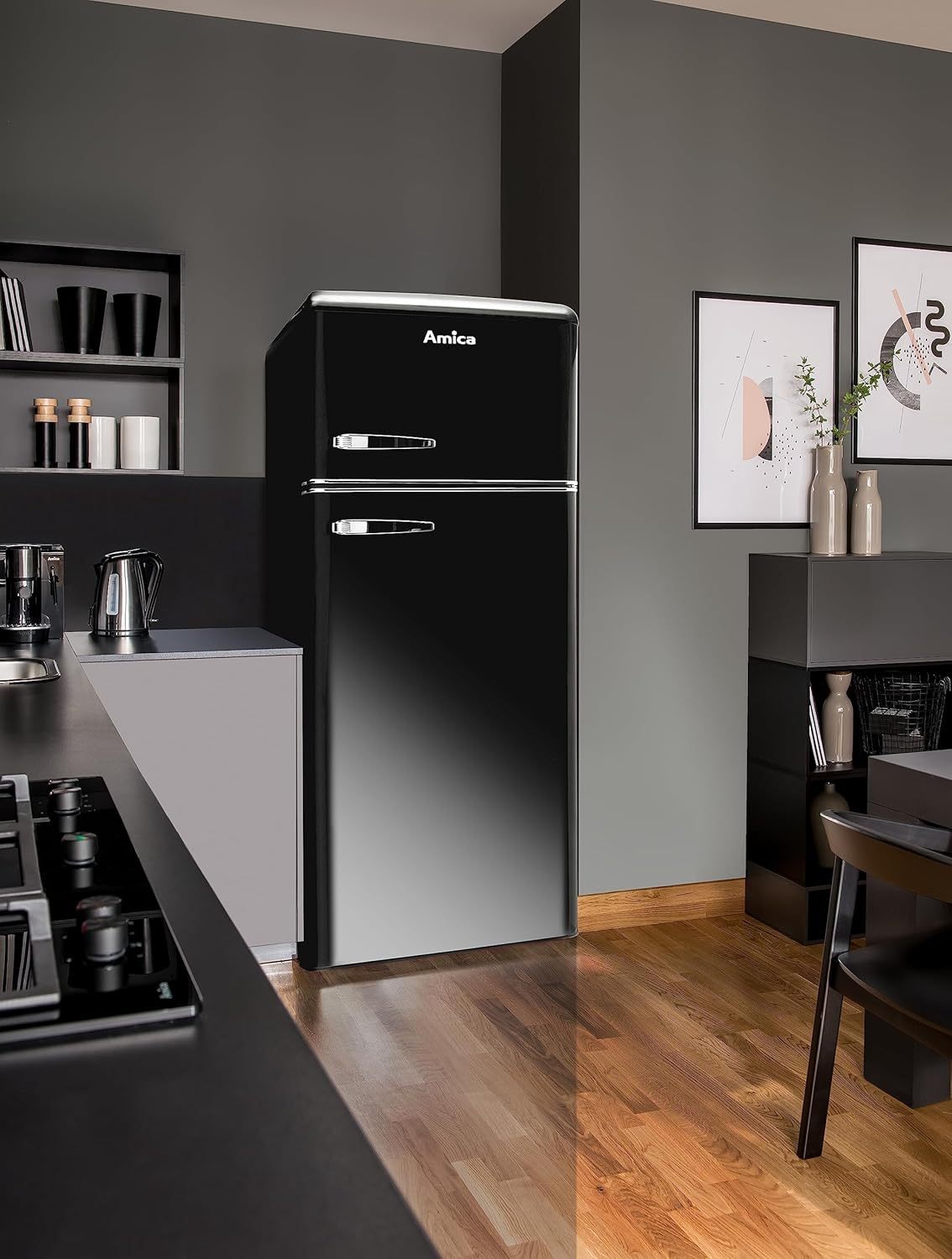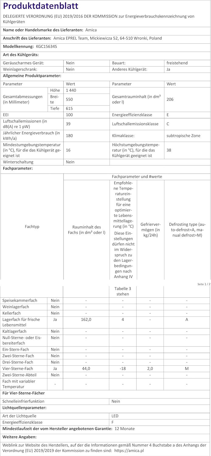 Amica KGC 15632 T Retro Kühl-/Gefrierkombination / Ice Blue (Türkis) / 144cm (H) x 55cm (B) x 62cm (T) / Retro-Design / Kühlschrank mit Gefrierfach