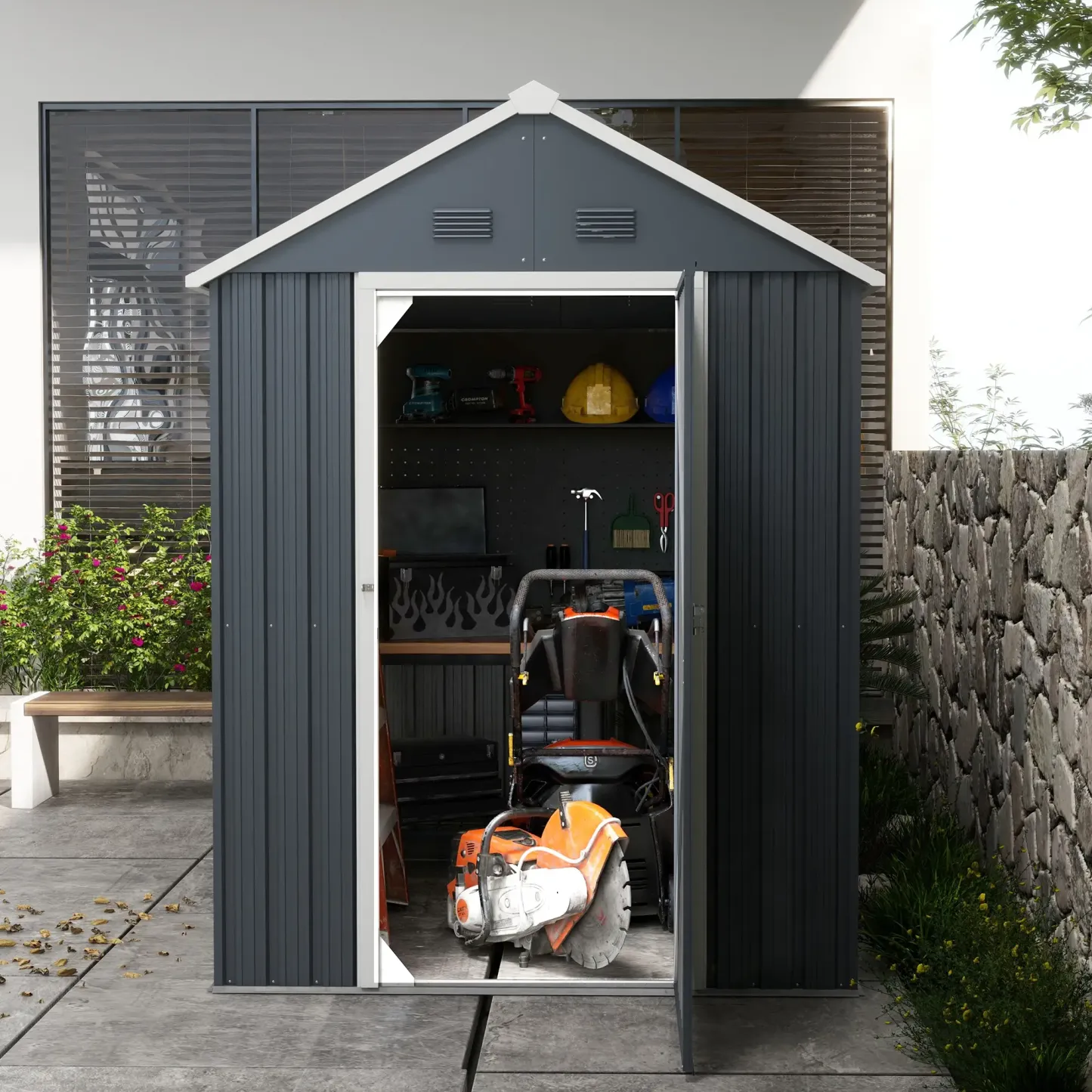 Outsunny Gerätehaus Gartenschuppen wetterfest viel Stauraum Stahl