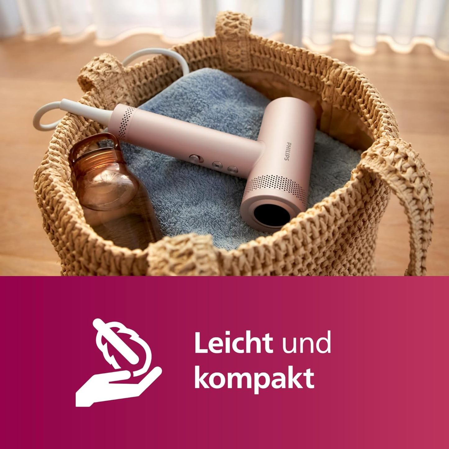 Philips Hochgeschwindigkeits-Haartrockner Serie 8000, ThermoShield Advanced, Ionic, Stylingdüse & Diffusor, Kopfhautpflege, 1400 W, Rose Champagne, Modell BHD837/10
