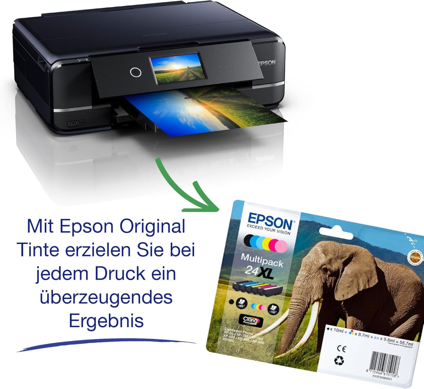 Epson Expression Photo XP-970 3-in-1 Tintenstrahl-Multifunktionsgerät Drucker (Scanner, Kopierer, WiFi, Ethernet, Duplex, 10,9 cm Touchscreen, Einzelpatronen, 6 Farben, DIN A3) schwarz, 10 x 15 cm
