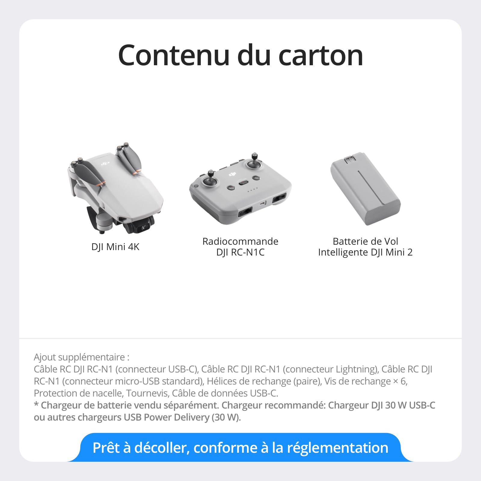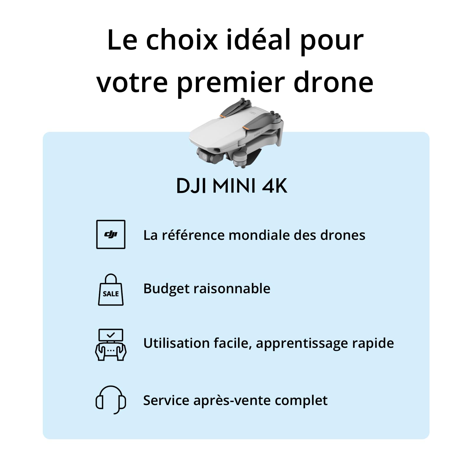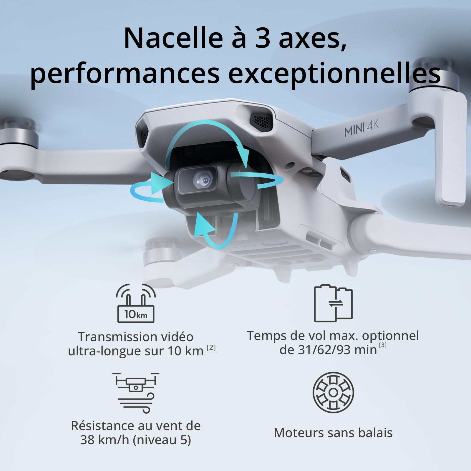 DJI Mini 4K, Drone Caméra 4K UHD, Moins de 249 g, Stabilisation de la Nacelle à 3 Axes, Transmission Vidéo sur 10 km, Retour Auto, Résistance au Vent,