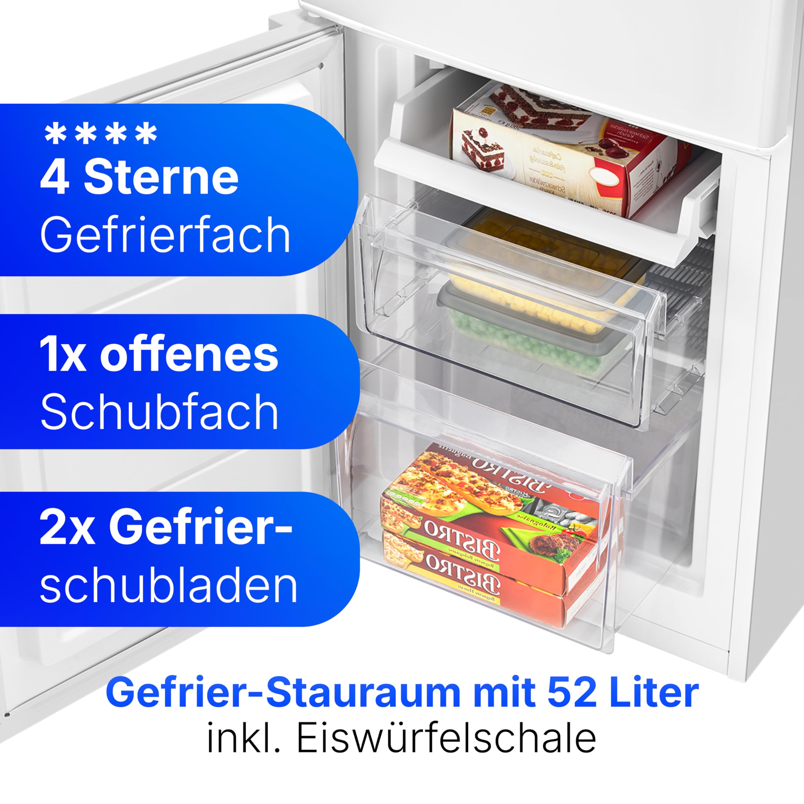 Bomann, KG7359 Réfrigérateur et Congélateur 173L Blanc - 121L Réfrigérateur, 52L Congélateur 4 Étoiles, Éclairage LED, Alarme d'Ouverture, Bac à Légum