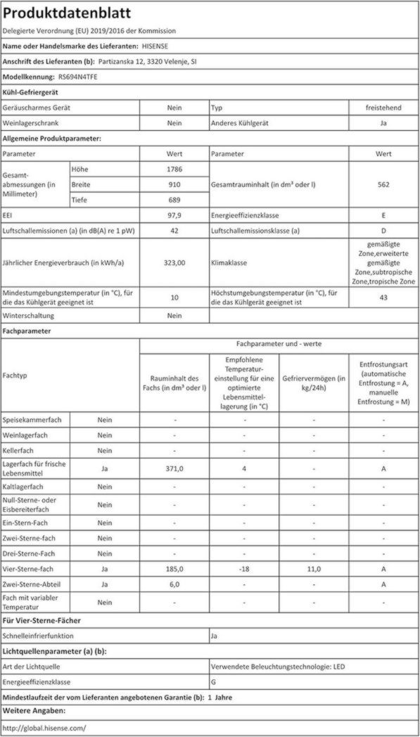 Réfrigérateur américain Hisense RS694N4TFE 562 LE Noir