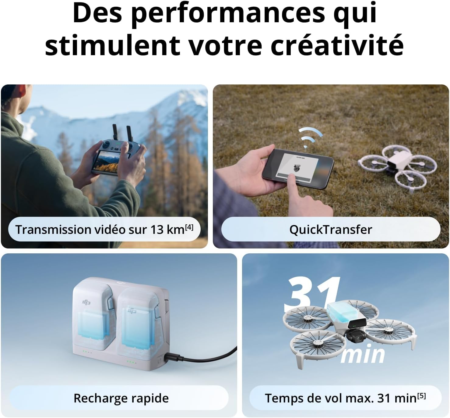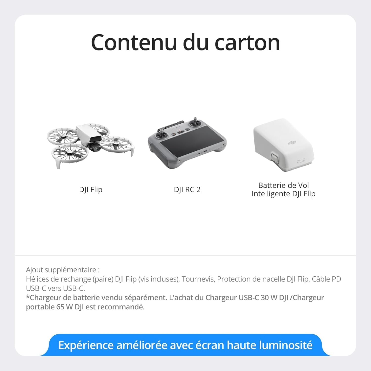 DJI Flip (radiocommande RC 2 avec écran), Drone Caméra 4K UHD Follow Me pour Adultes, < 249 g, Nacelle à 3 Axes, Transmission vidéo sur 13 km, Décollage palmaire, Temps de vol de 31 Min