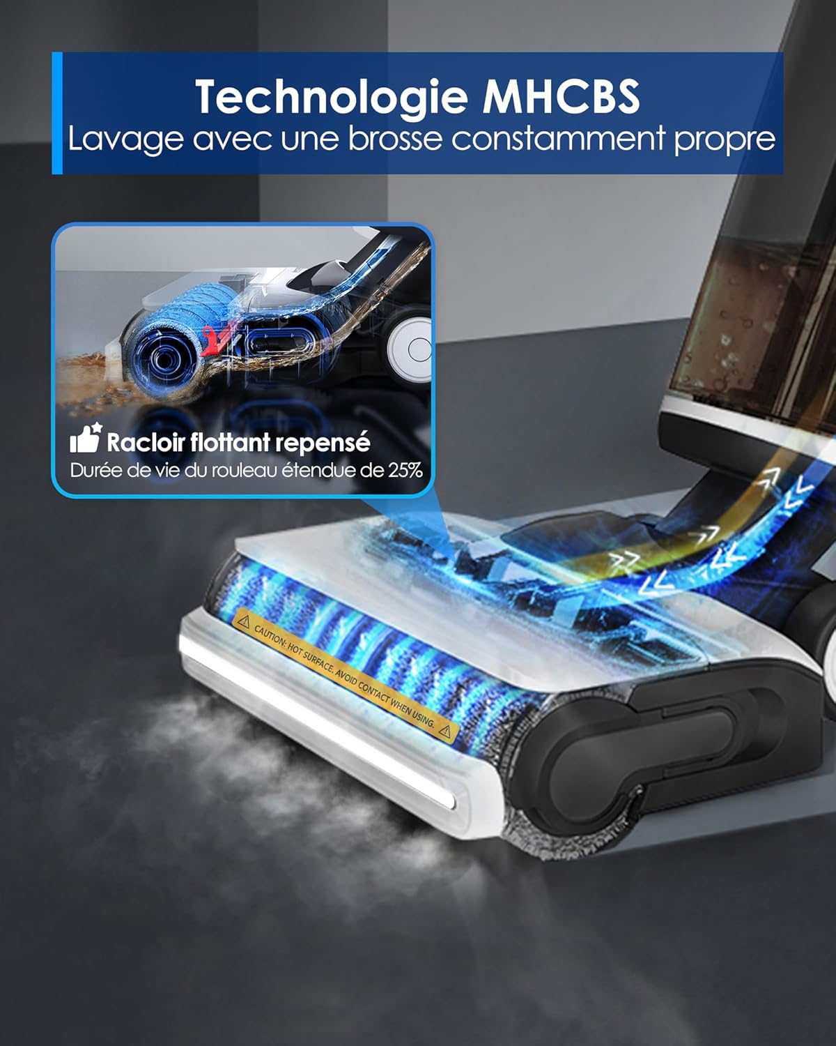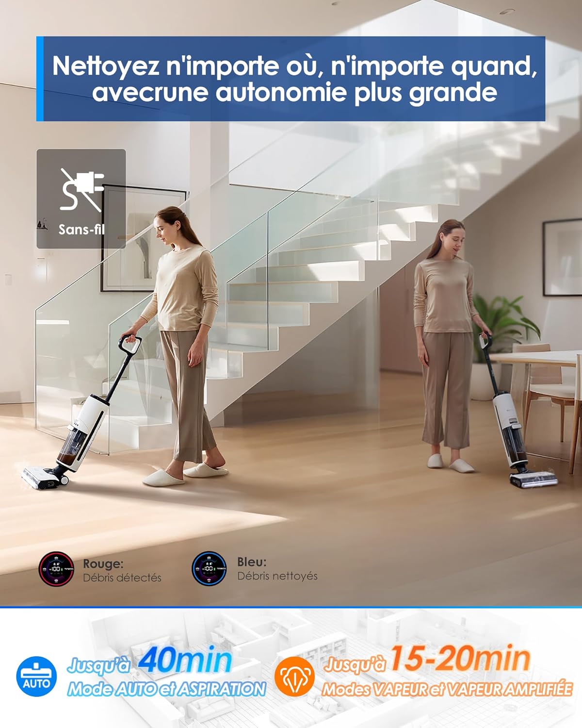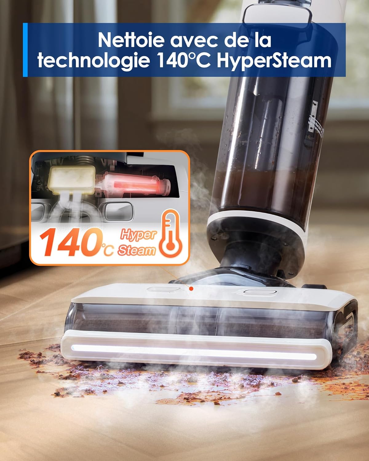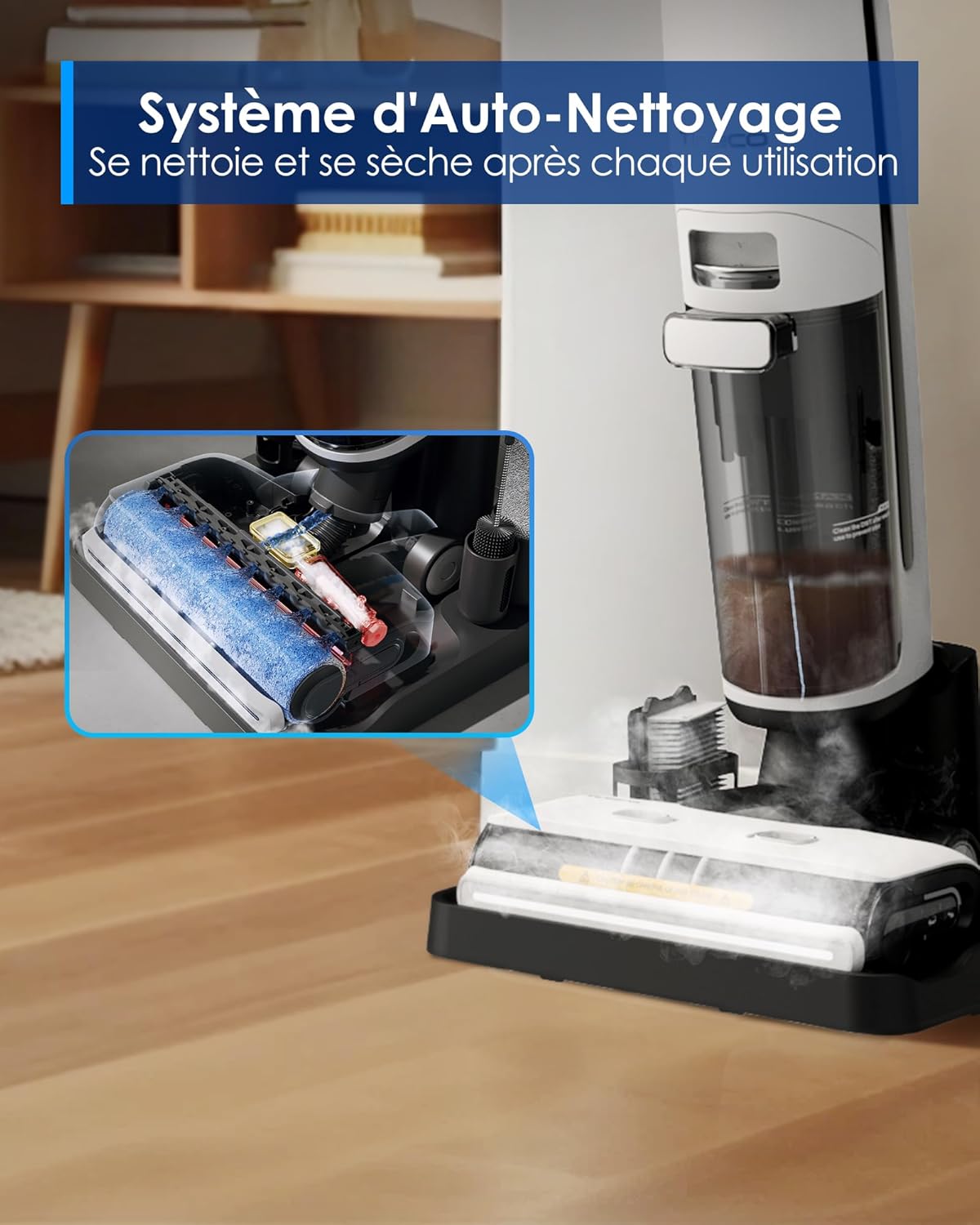 Tineco Floor One S7 Steam Nettoyeur de Sols sans-Fil Balai Vapeur pour Saletés Collantes sur Sols Durs avec Écran Auto-Nettoyage Nettoyage des Bords Autopropulsion Parfait pour Enfants/Animaux