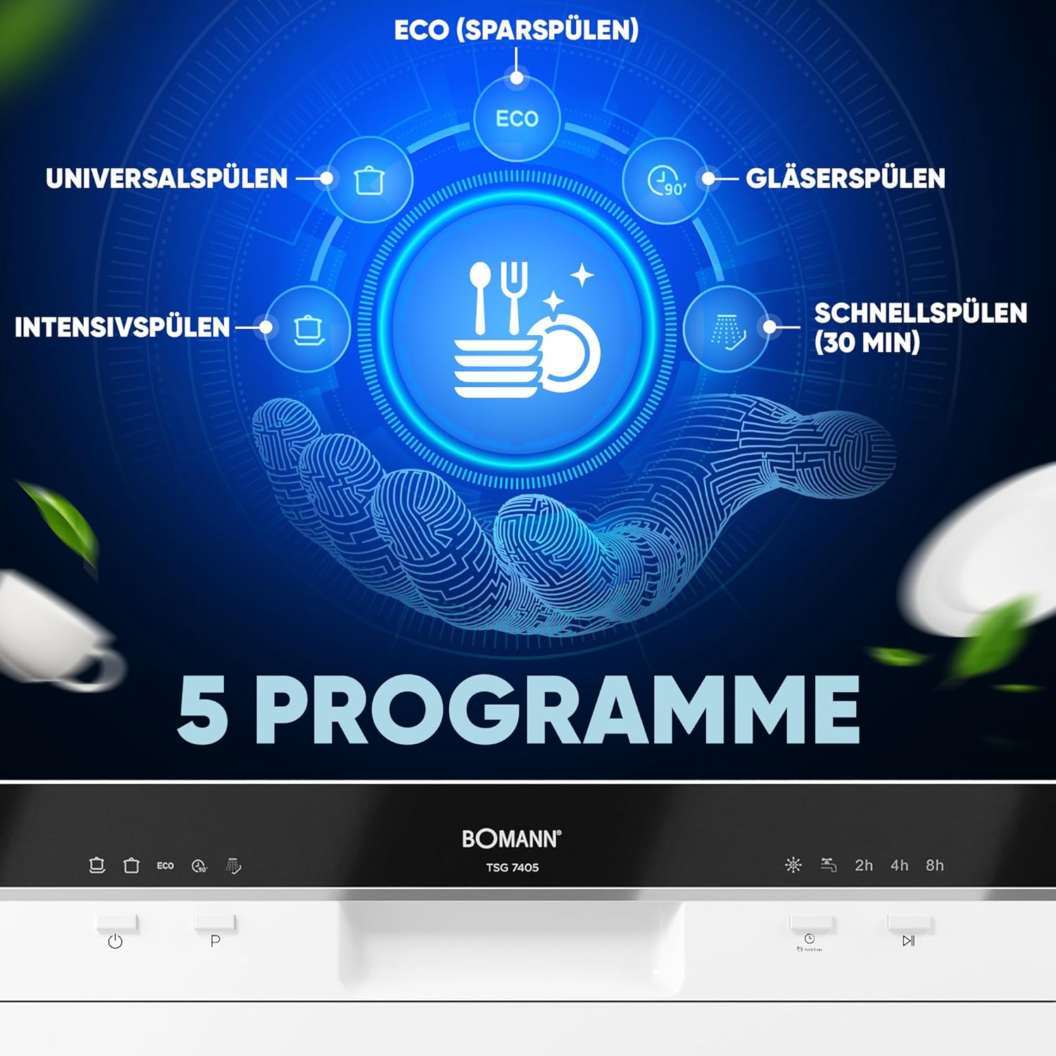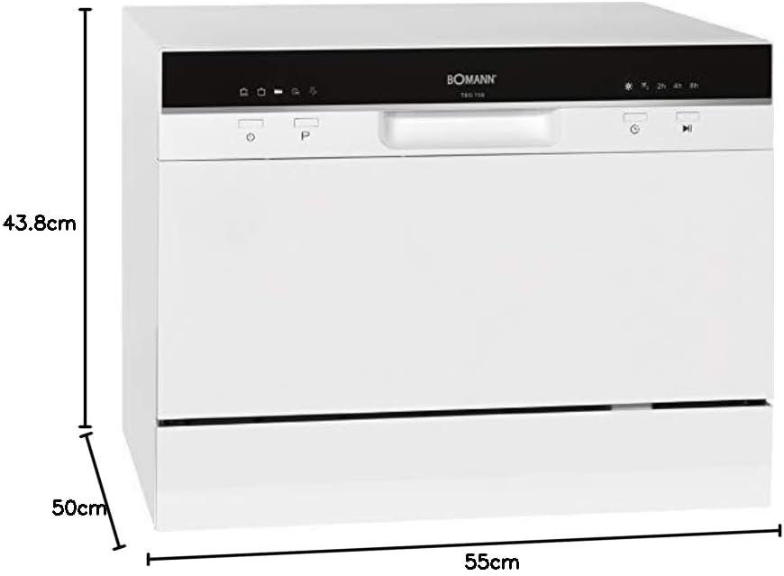 Bomann Mini Geschirrspüler mit Wasseranschluss | inkl. Schlauch | Tisch Geschirrspüler leise | Mini Spülmaschine für kleine Küchen/Camping | Spülmaschine klein m. Überlaufsicherung | TSG 7405 weiß