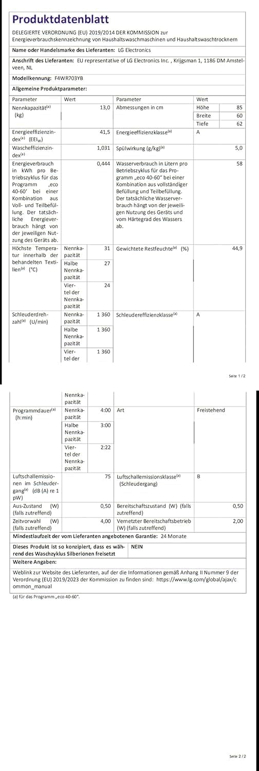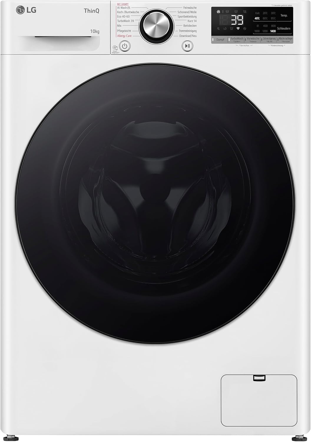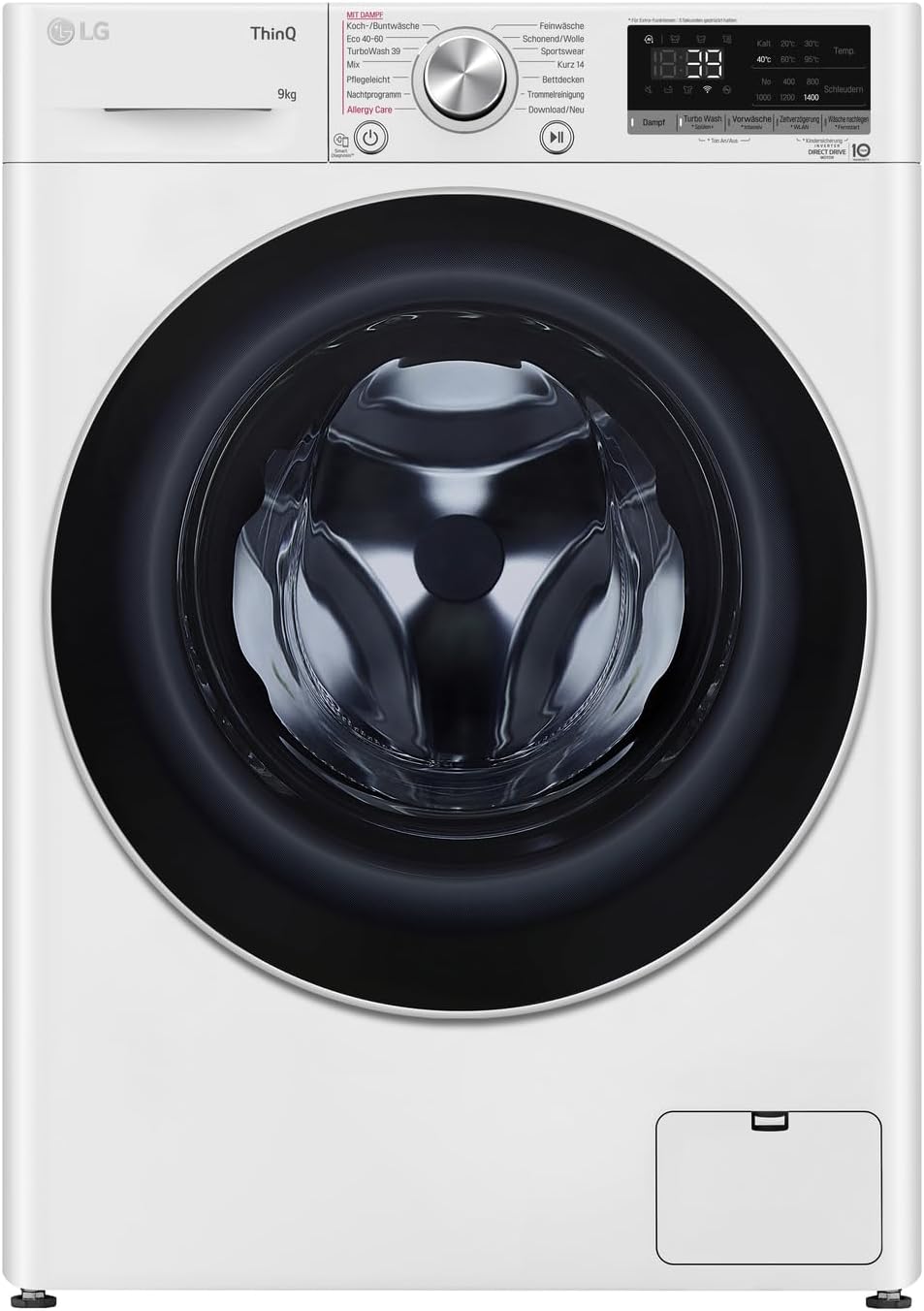 LG F4WV7080, Klasse A, Frontlader-Waschmaschine 8 kg, 1400 U/Min, AI Direct Drive, Wi-Fi, Tiefenreinigung mit Dampf, Große Kapazität, TRIPLE A, Außentür aus Sicherheitsglas, 62 x 60 x 85 cm ꟷ Weiß