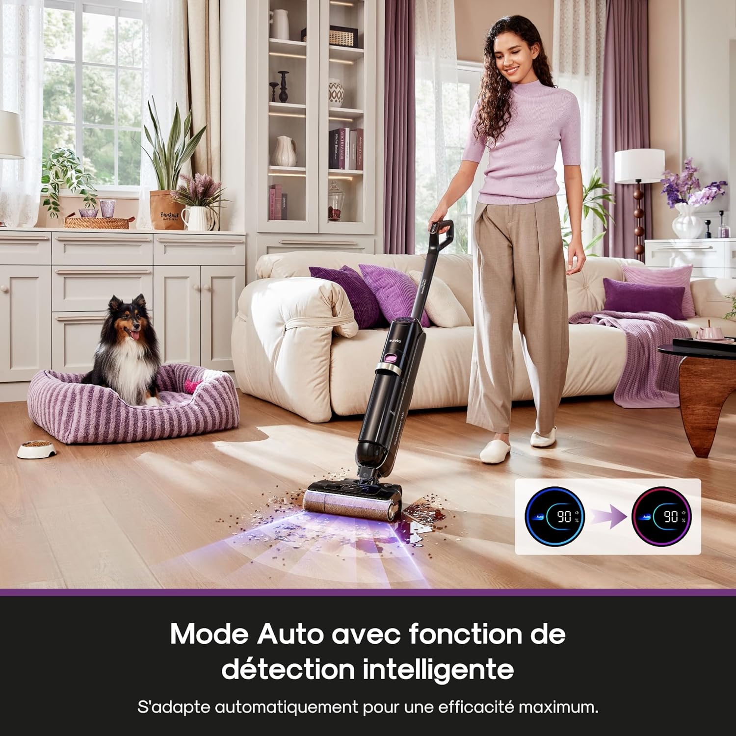 EUREKA RapidWash NEW730 Aspirateur Laveur sans Fil Aspiration 21600 Pa, Lavage Eau Chaude 85 °C, Séchage 5 Minutes Air Chaud, Anti Emmêlement 2,0, Conception à Plat, Autonomie 40 Mins Ininterrompue