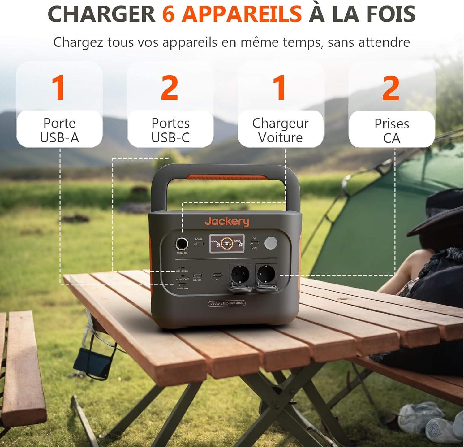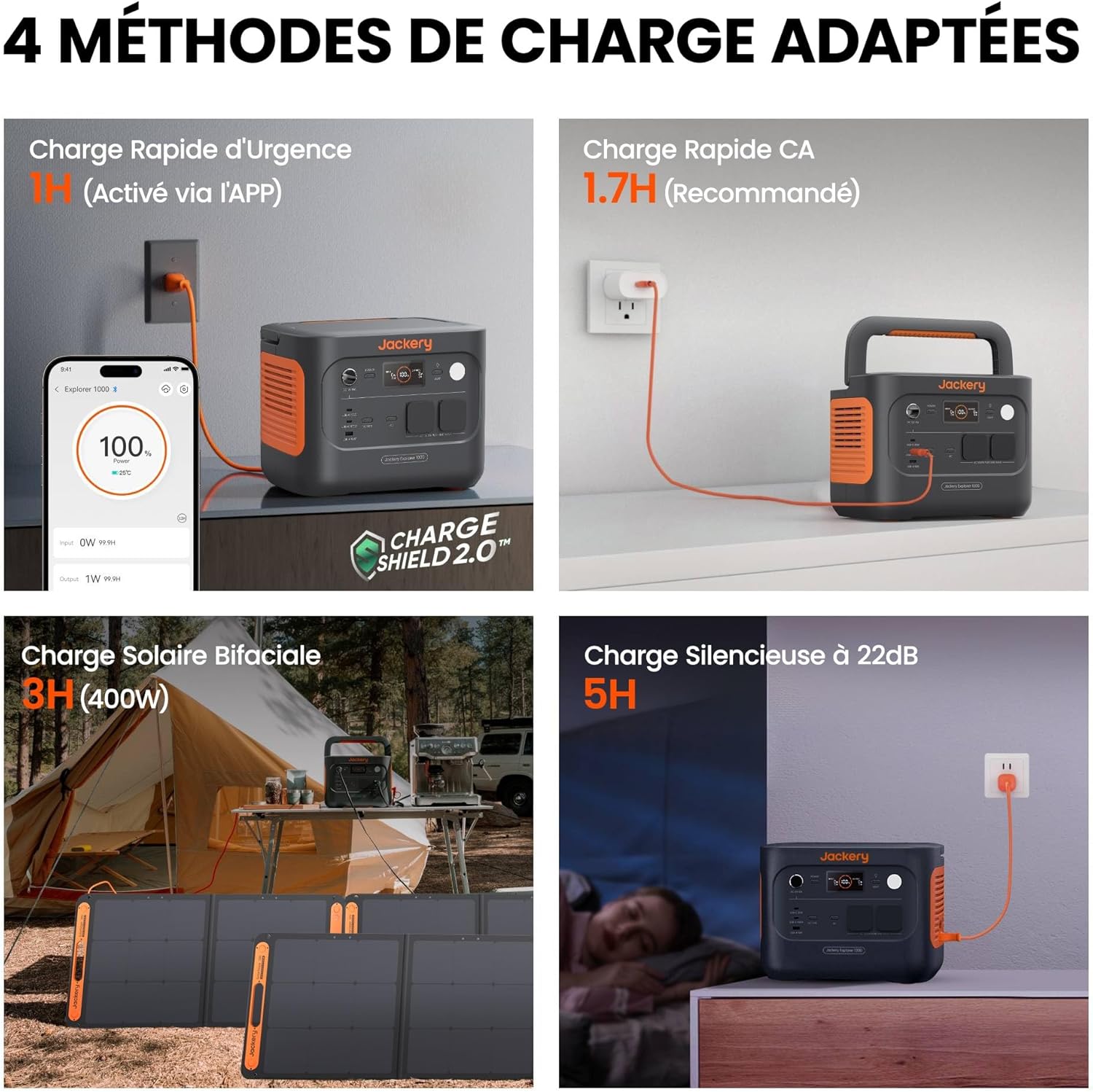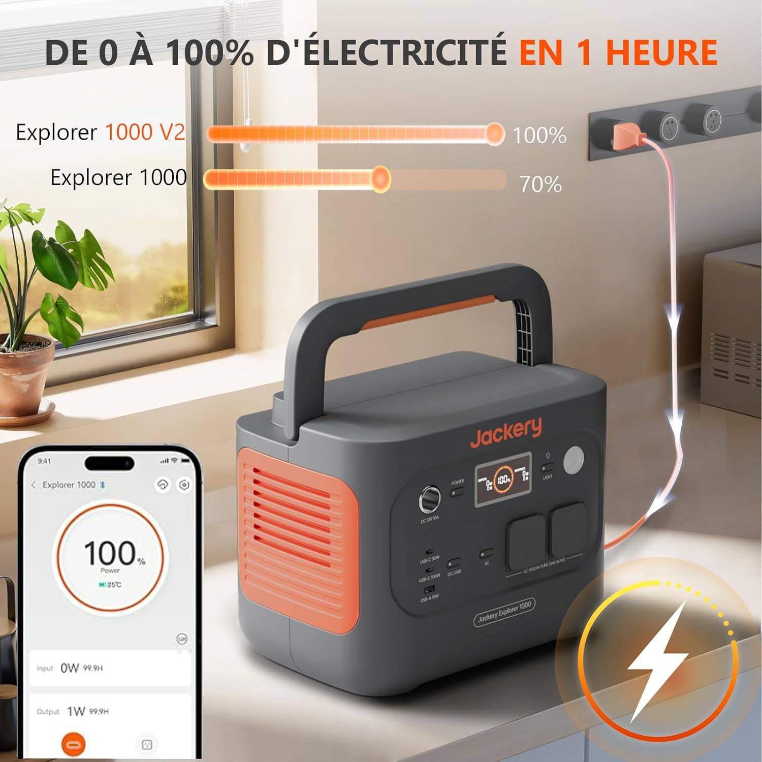Jackery Explorer 1000 v2 Générateur Électrique Portable avec 200W Panneau Solaire, 1070Wh Batterie LFP, 1500W CA/100W USB-C Sortie, Charge Complète Rapide 1H via APP pour Plein Air,Camping-car,Urgence