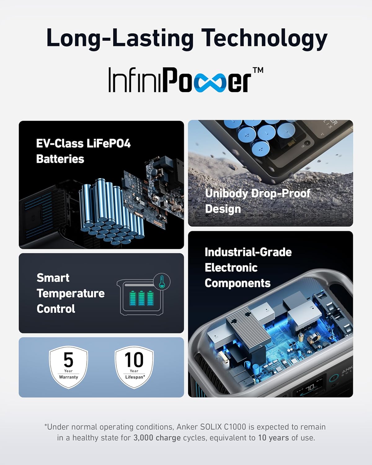 Anker SOLIX C1000 Station d'alimentation portable, générateur solaire 1800 W (pic 2400 W), charge complète en 58 minutes, batterie LiFePO4 1056 Wh pour sauvegarde à domicile, pannes de courant et