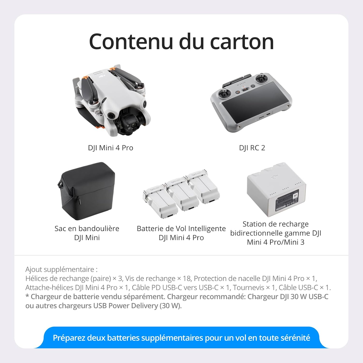 DJI Bundle avec Mini 4 Pro Fly More avec RC 2 (Radiocommande avec Écran), Mini Drone Pliable avec Caméra 4K, Moins de 0,549 lb/249 g, Temps de Vol de 34 min, 2 Batteries Supplémentaires, C0