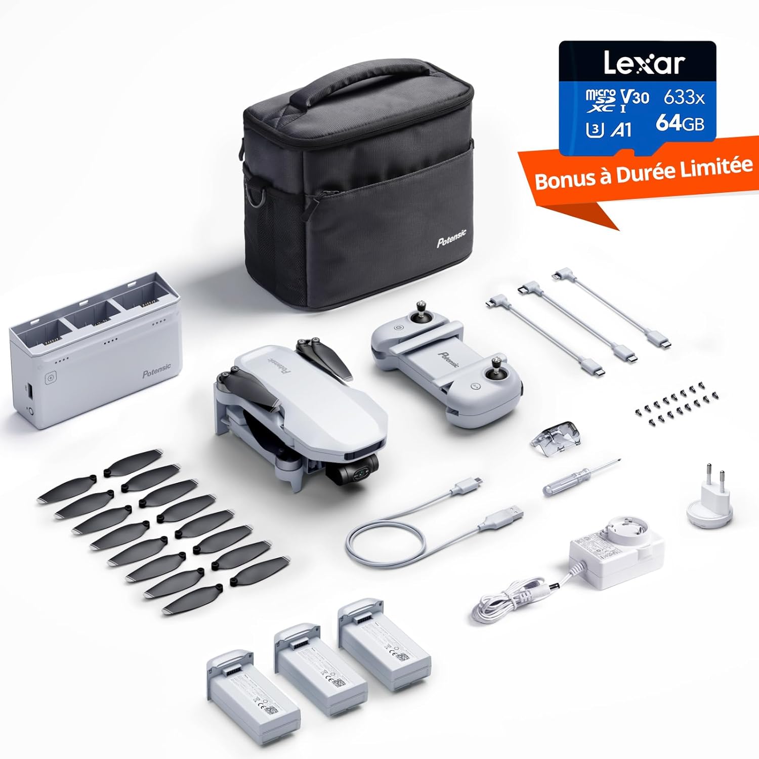 Potensic ATOM Combo GPS Drone, Caméra 4K avec Gimbal à 3 Axes, Moins de 249g, 3 Batteries et Hub de Charge, Temps de Vol 96 Min, Transm. Vidéo 6KM, QuickShots, Suivi Visuel, Sac de Transport, C0