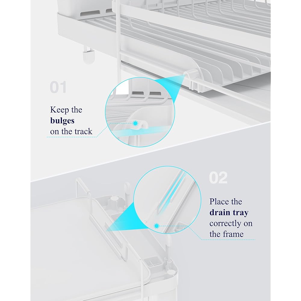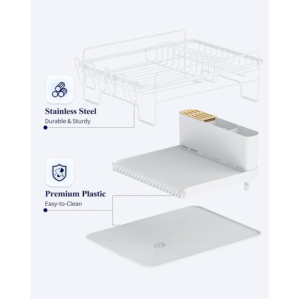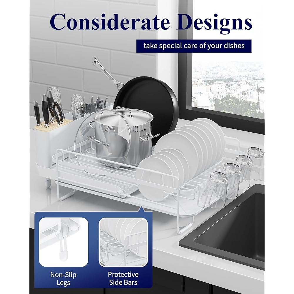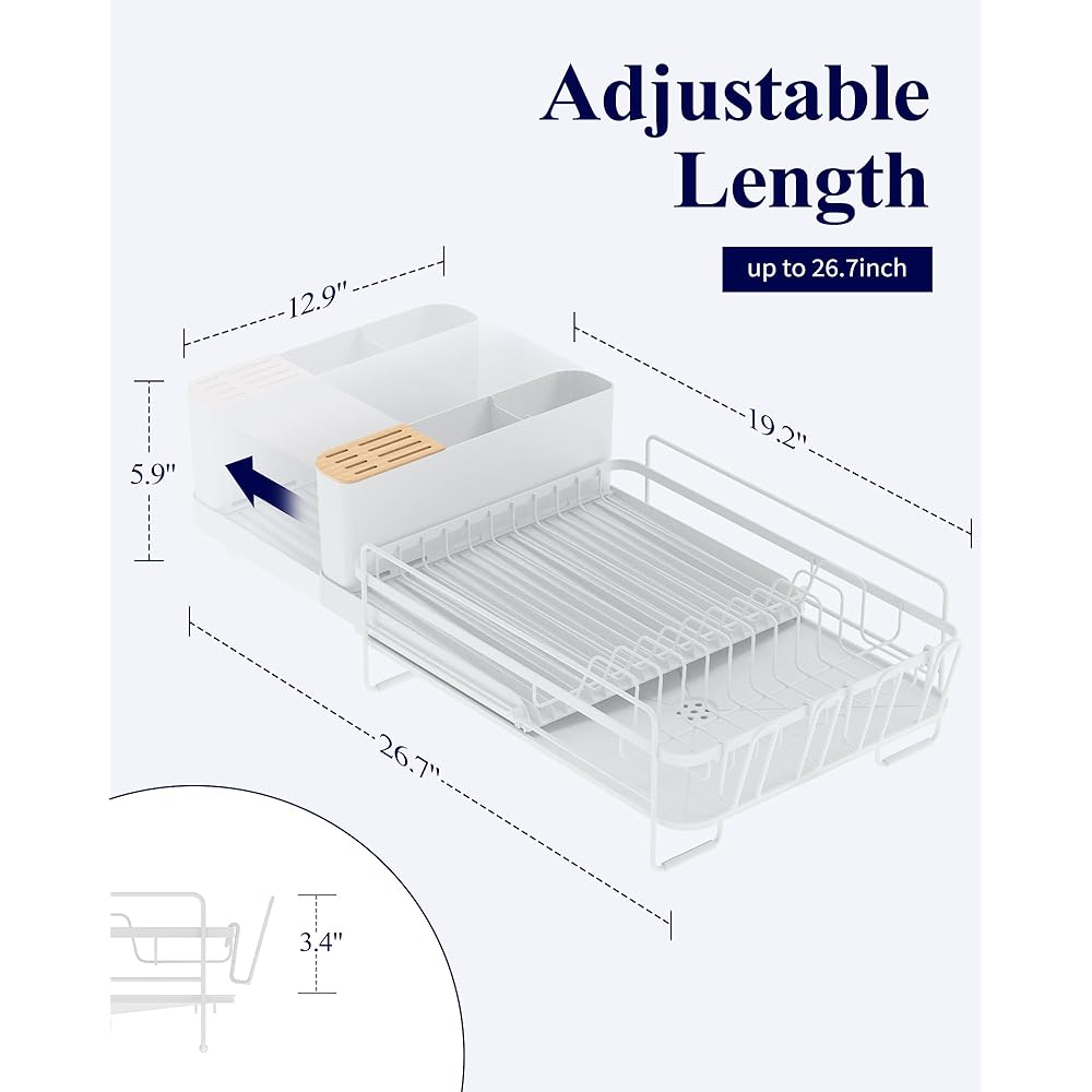 Kitsure Grand égouttoir à vaisselle – Égouttoir à vaisselle extensible multifonction pour comptoir de cuisine, égouttoir à vaisselle antirouille avec couverts et porte-gobelets, 68,6 x 32,8 cm (L x : Cuisine et Maison