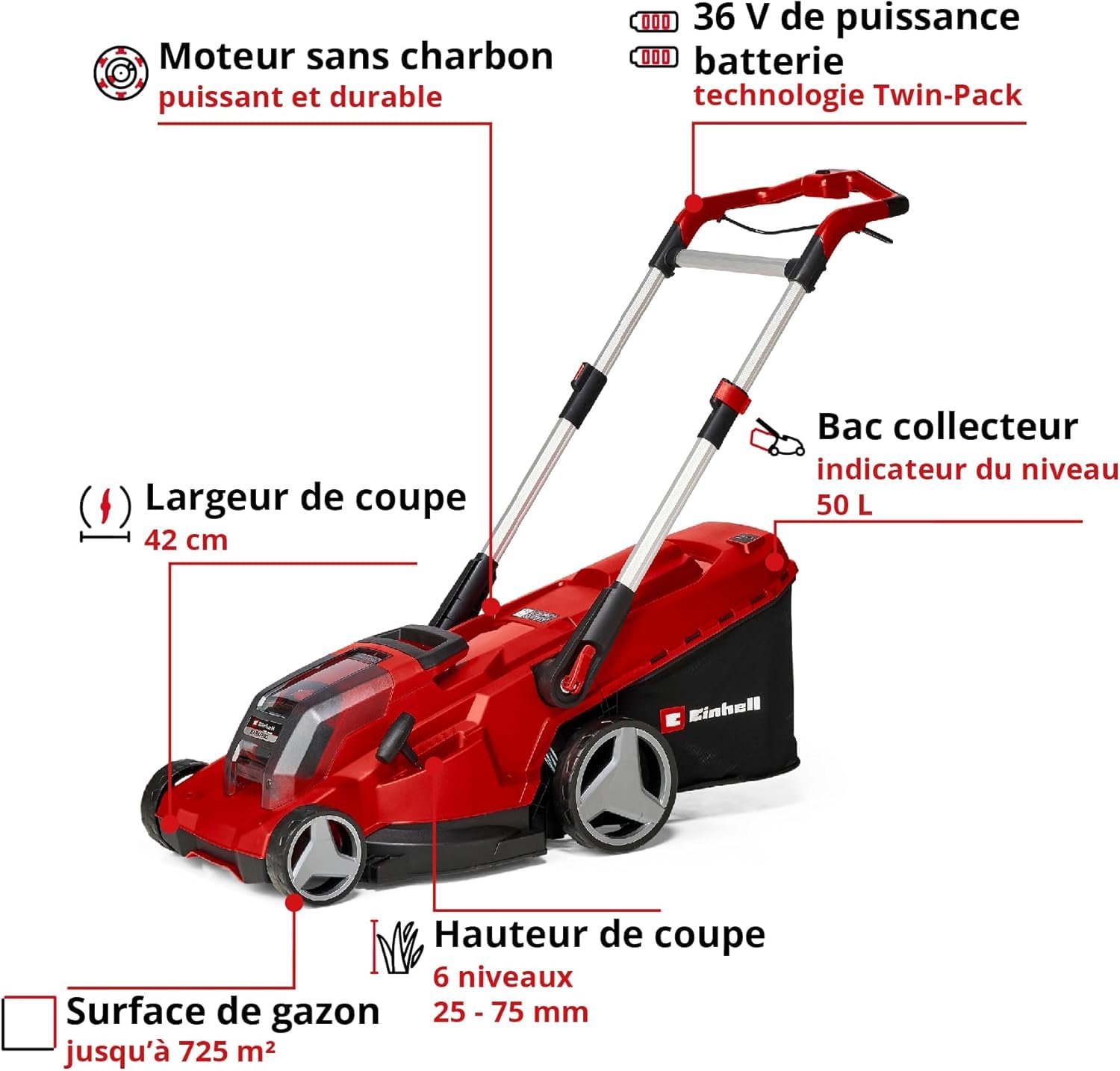 Einhell Professional Tondeuse à gazon sans fil RASARRO 36/42 Kit Power X-Change (36V, largeur de coupe: 42 cm, Bac 50L, moteur sans charbon) Livré ave