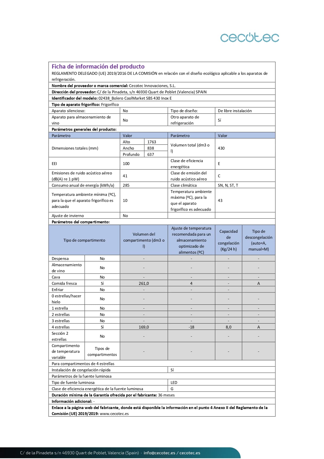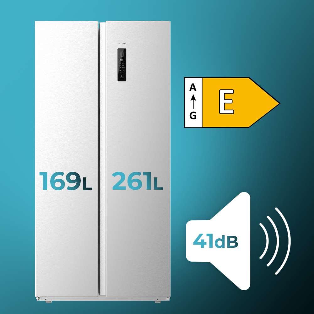Cecotec Réfrigérateur Américain CoolMarket SBS 430 Inox E. 2 Portes, Side by Side 430 L, Hauteur 176 cm et Largeur 84 cm, Multi Air Flow System, Total