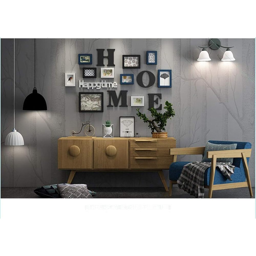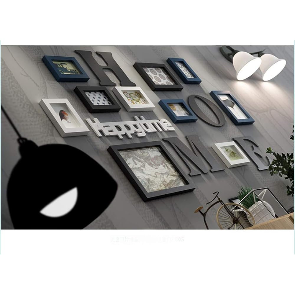 Ammon Lowen Photo Mur Cadre Photo Organiser Collage de Cadre Photo Ensemble de Bois Massif Salon Cadre Mural créatif Décoration Murale de Fond (Bleu) : Cuisine et Maison