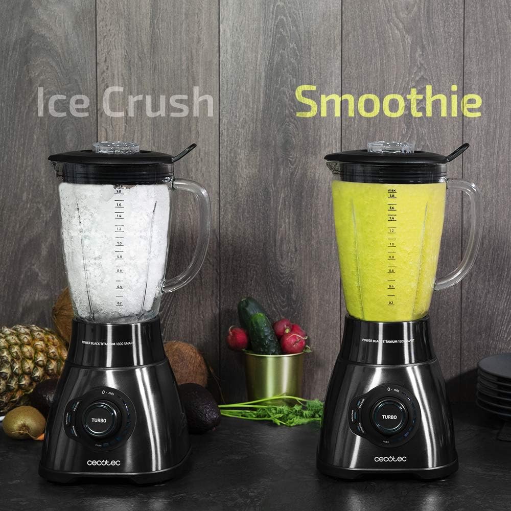 Cecotec Mixeur Blender - Mixeur Américain Power Black Titanium 1800. 1800W avec 6 Lames en Titane noir, Bol en verre 1,8L de Capacité, Filtre pour Jus, 6 Vitesses + Turbo : Cuisine et Maison