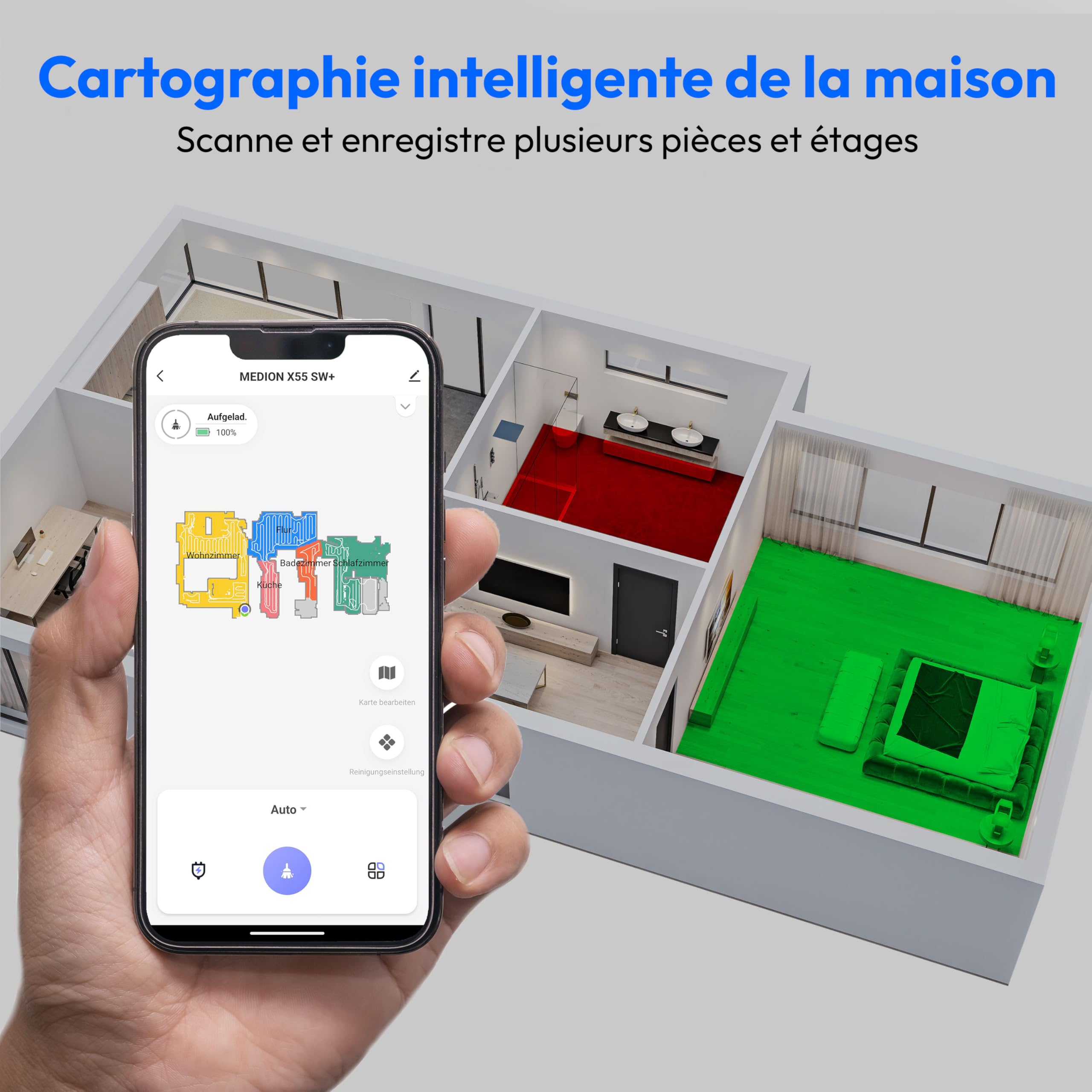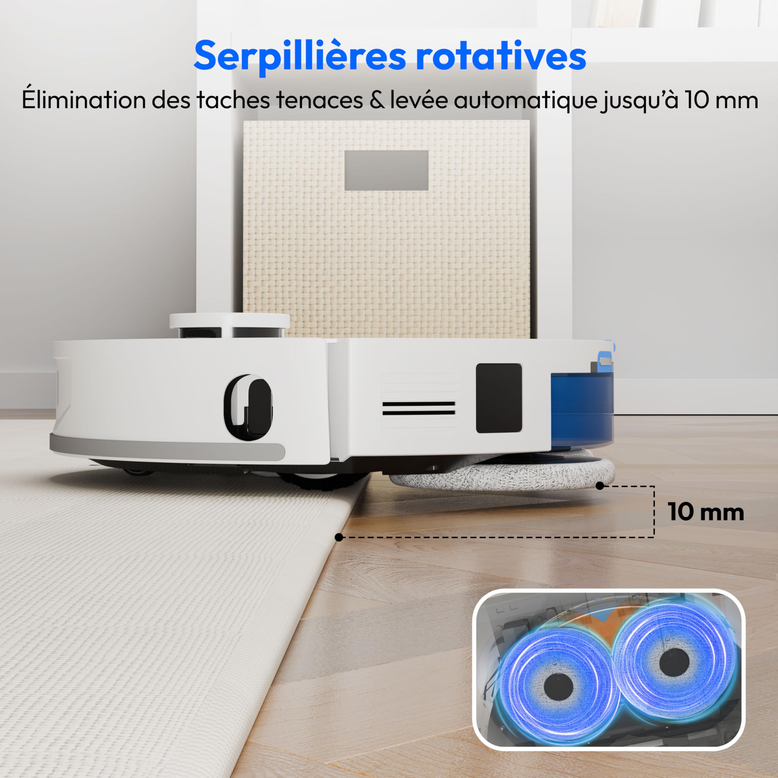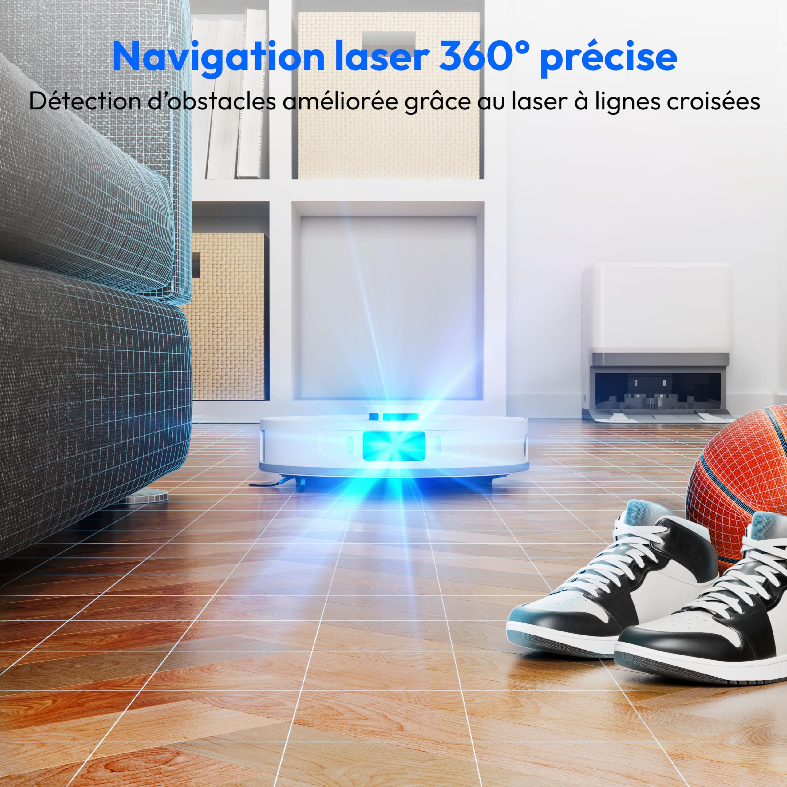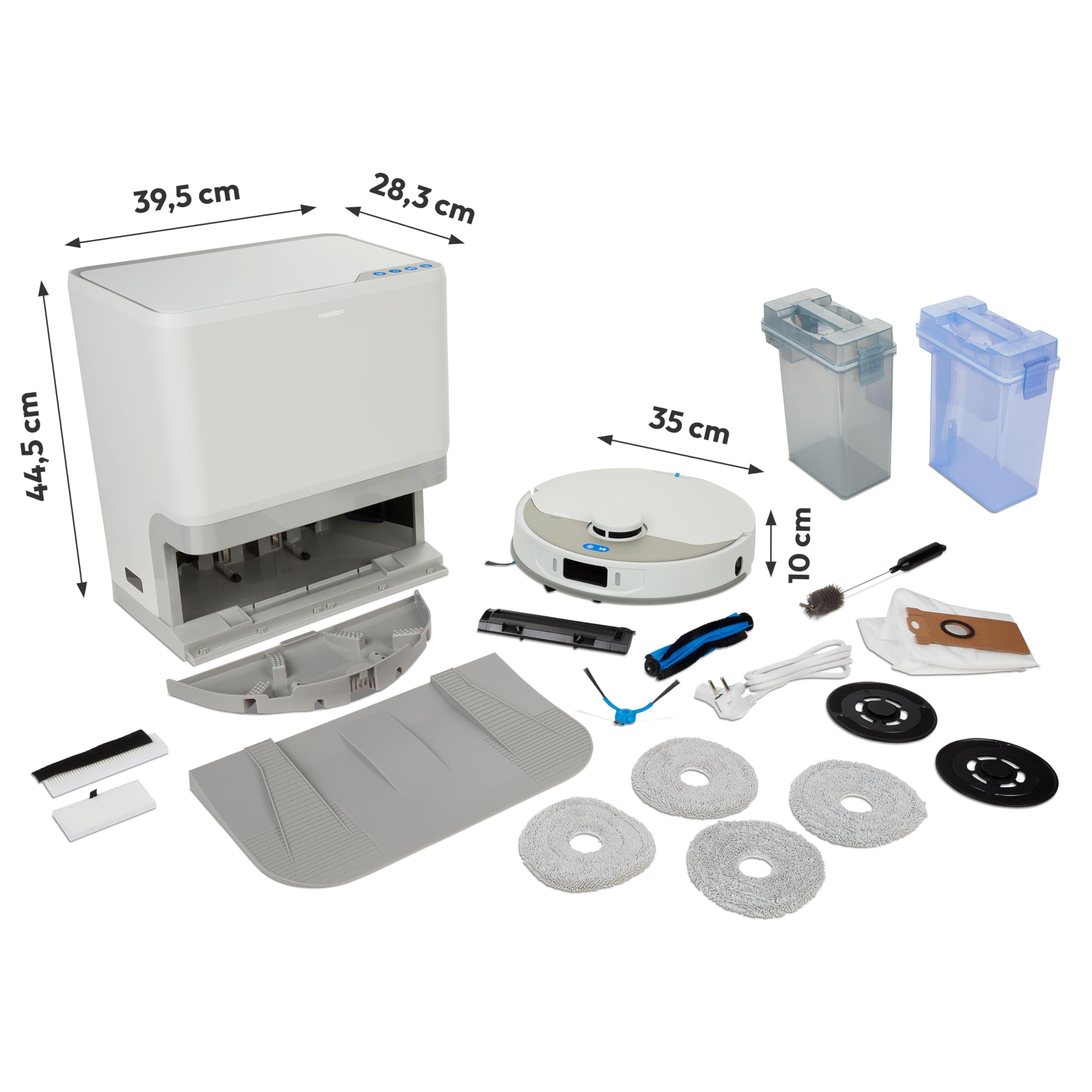 MEDION Robot aspirateur avec Station 3-en-1, Navigation Laser et Fonction serpillère X55 SW+ (Puissance d’Aspiration 10.000 Pa, brosses rotatives, Las