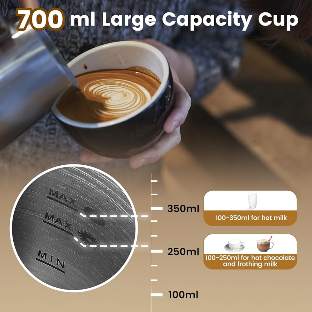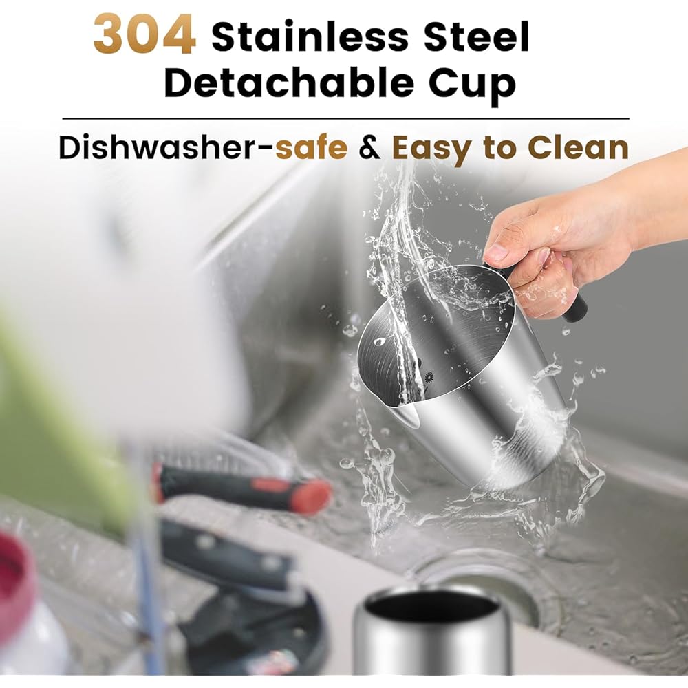 Huanyu Mousseur à lait électrique 700ml Mousseur à café amovible en acier inoxydable Mousseur à lait multifonctionnel avec 4 modes Utilisation chaude/froide Fouet à café Mousseur : Cuisine et Maison