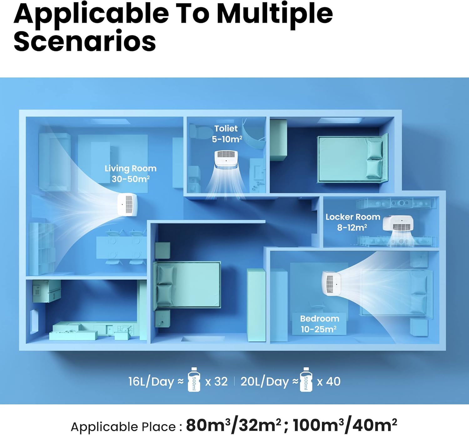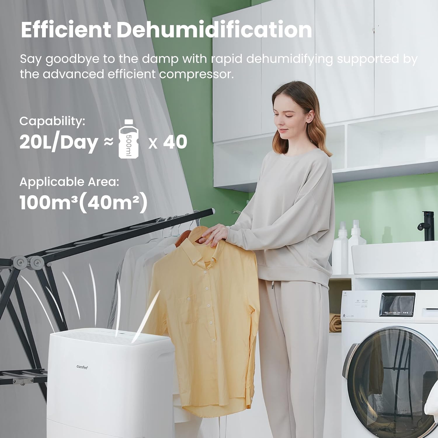 Comfee Déshumidificateur Connecté 20L/jour, 4 Modes, Deshumidificateur d air Silencieux, Sèche-Linge, Réservoir 3L, Pour pièce de 40㎡/100m³, MDDF-20DEN7-WF, Chambre, Garage, Fonctionne avec Alexa