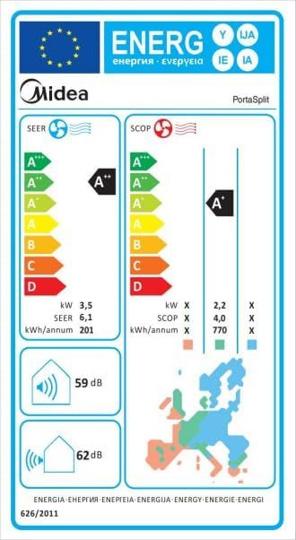 Midea Portasplit Klimaanlage, Mobile Wärmepumpe, Kühlen A++/Heizen A+, 12000 BTU 3, 5kW, für Räume bis zu 42 m² / 105 m³, nur 39 dB(A) im Silent-Modus