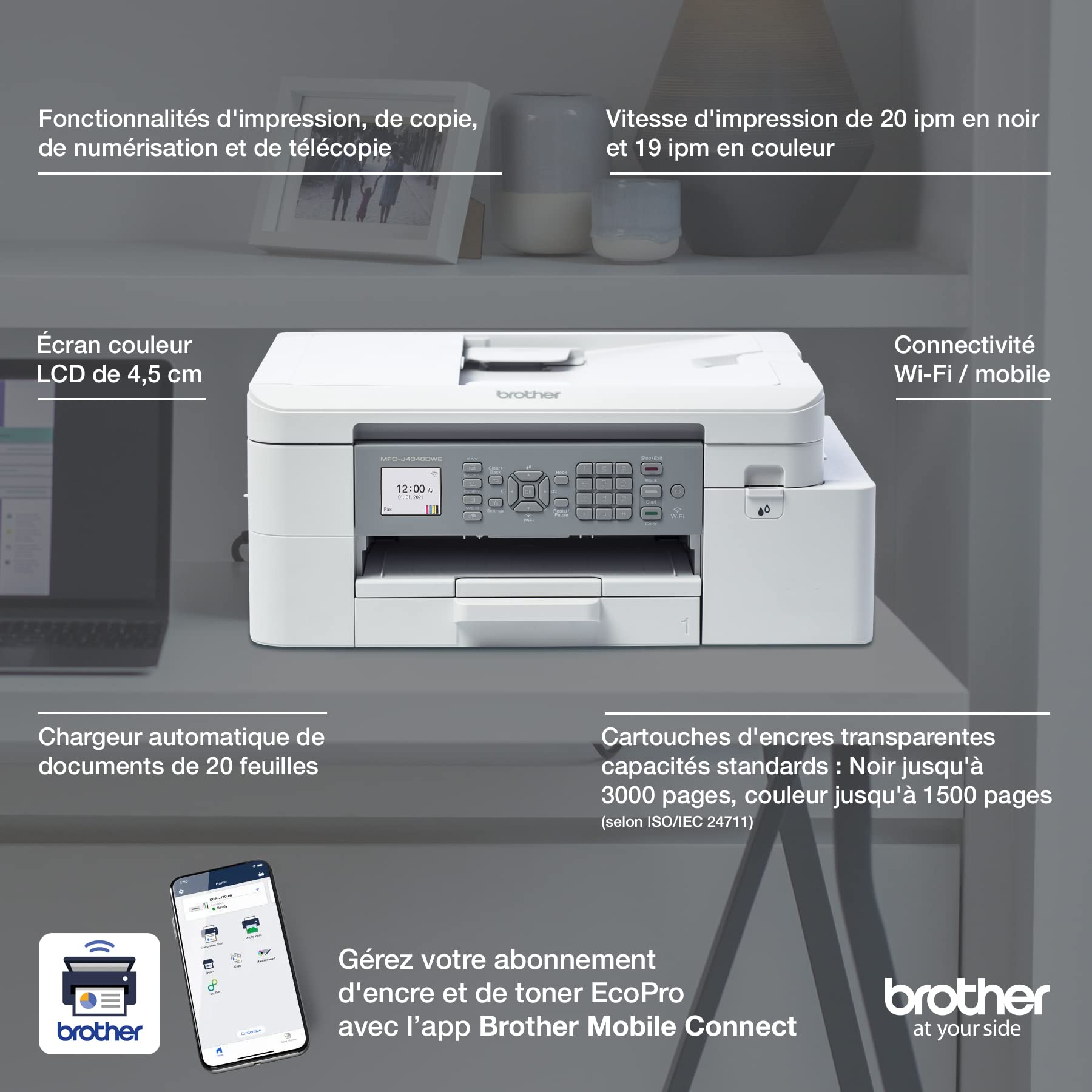 Brother MFC-J4340DWE - Imprimante Jet d'encre Couleur Multifonction sans Fil Professionnelle A4 - Eligible au Forfait d'encre EcoPro.