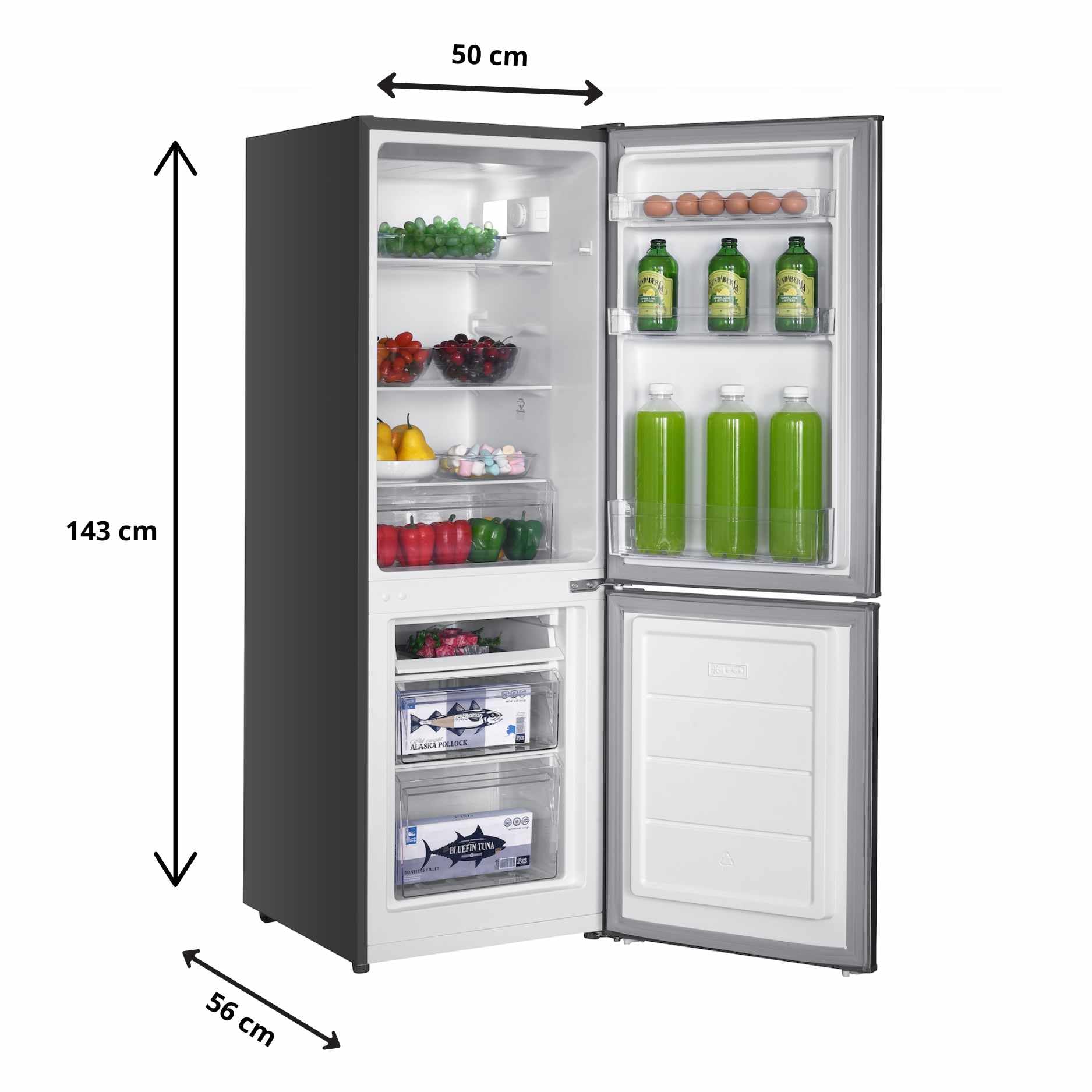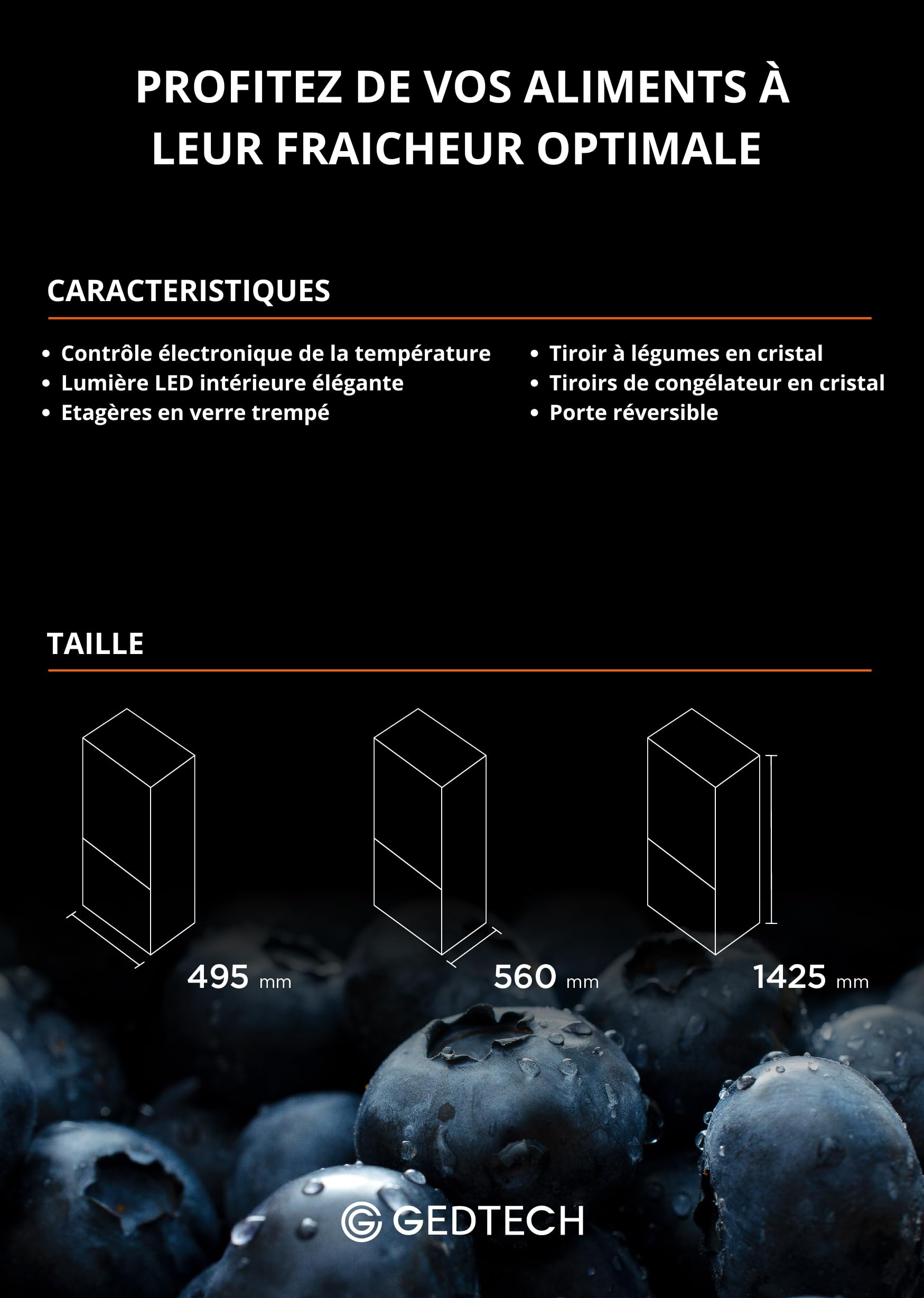 GEDTECH Réfrigérateur combiné congélateur bas 173L GCB173SL - Silver - Hauteur 143cm