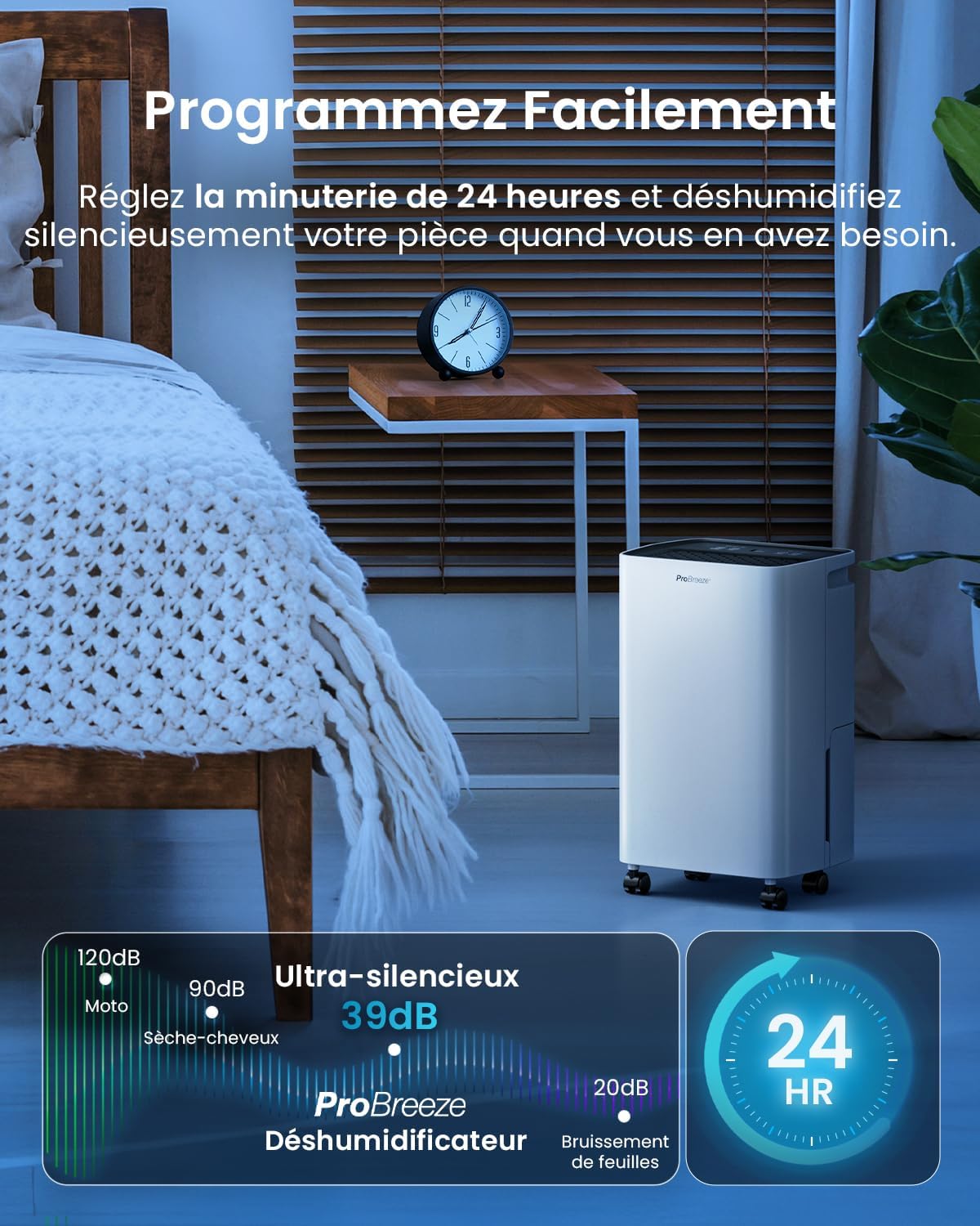 Pro Breeze Déshumidificateur d Air 12L/jour, Éliminateur de Moisissure Noire, Absorbeur d'Humidité Automatique, Sèche-linge, Déshumidificateur Compresseur Portable Silencieux, Minuterie 24h
