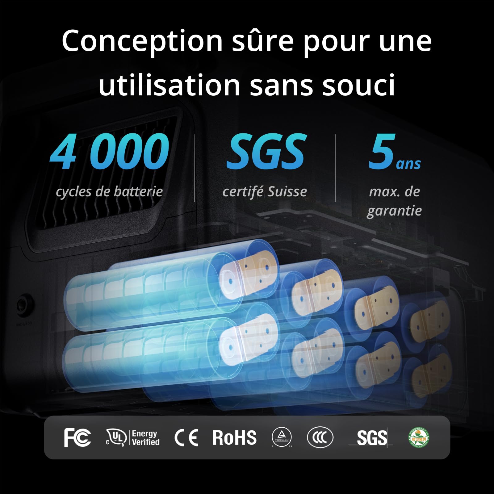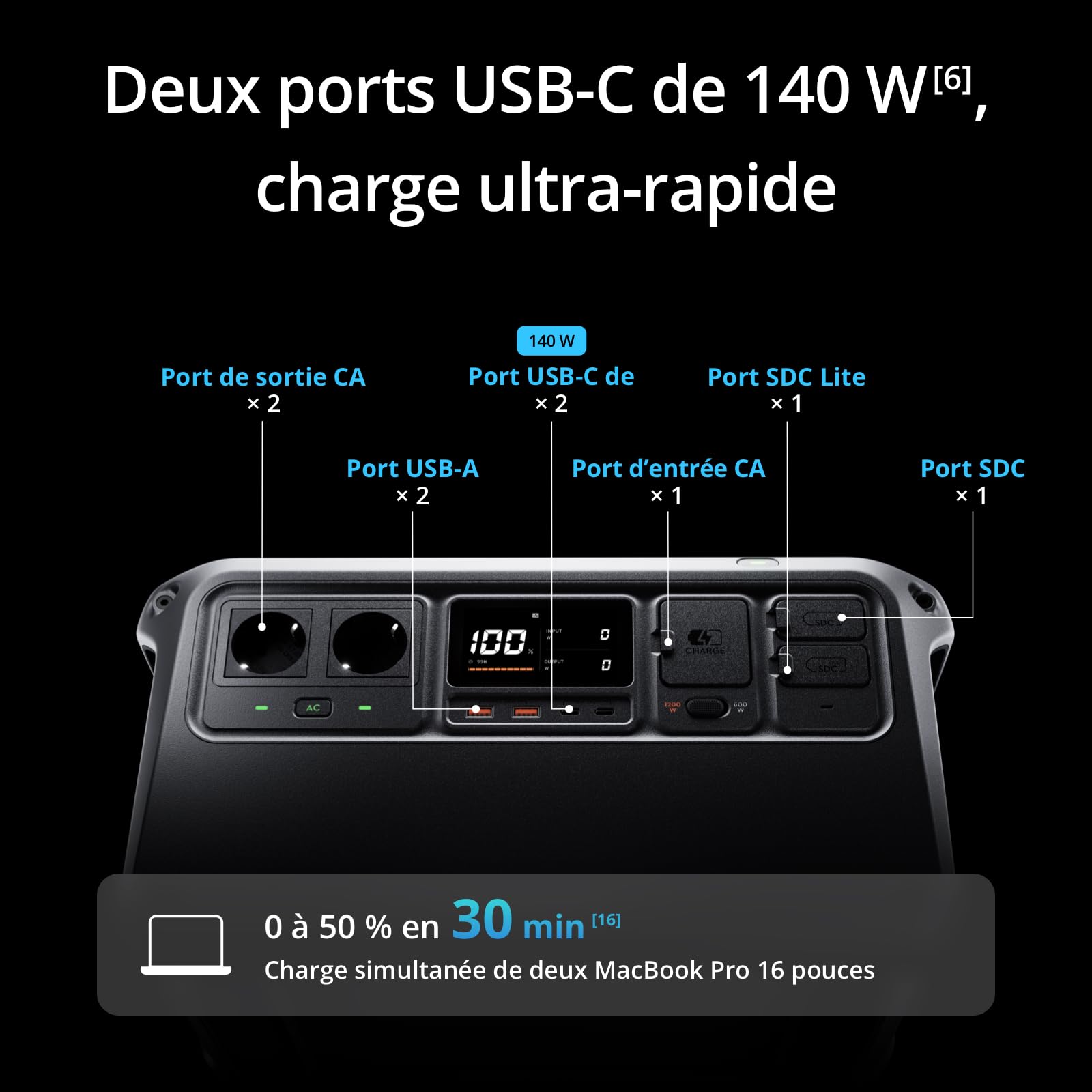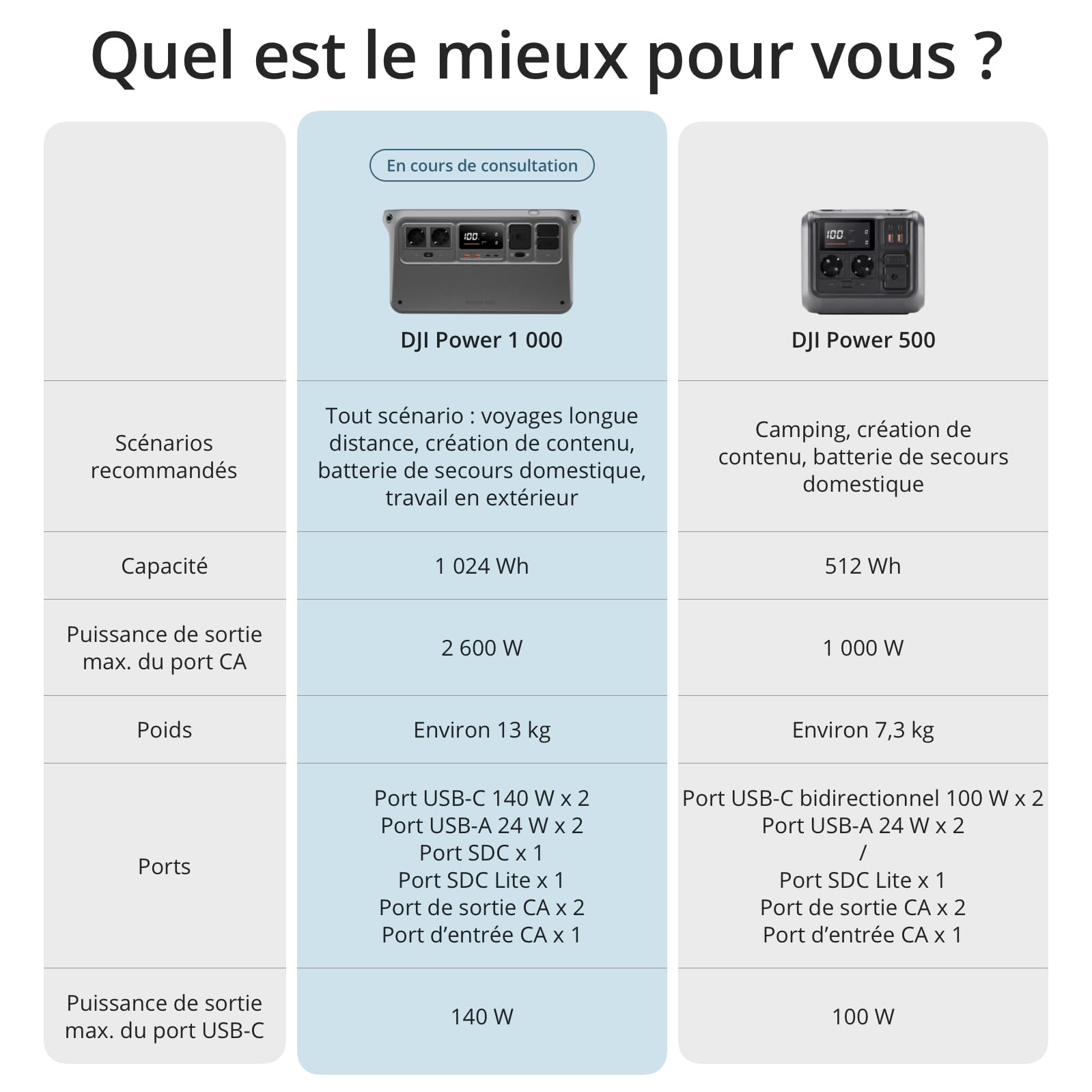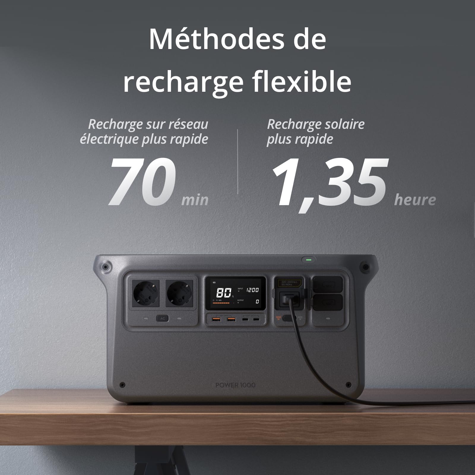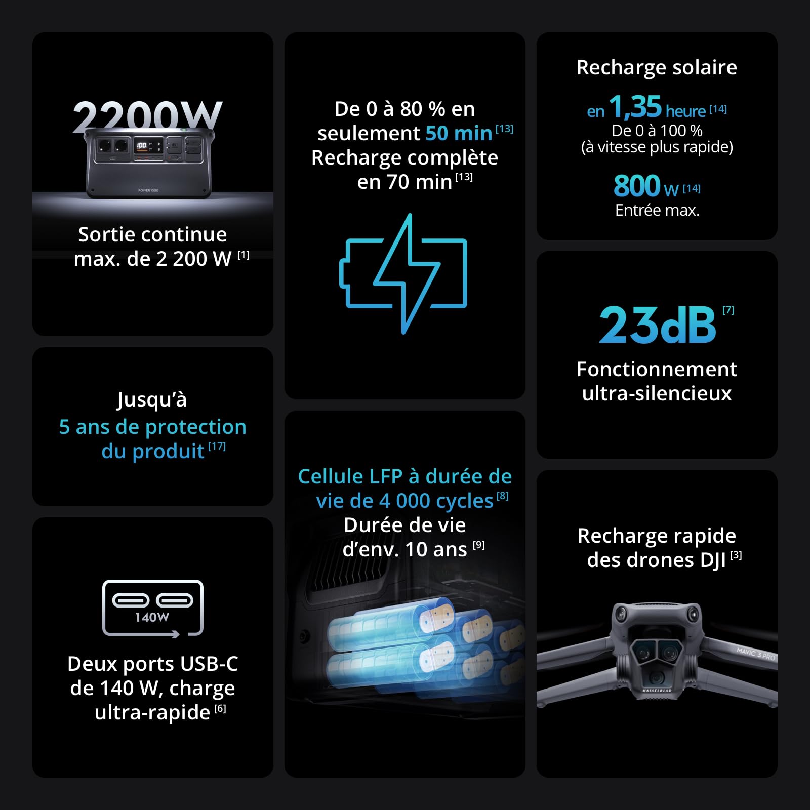 DJI Power 1000, Station Électrique Portable, Batterie LFP (LiFePO4) de 1 024 Wh, Charge Rapide de 70 Min, Sortie Stable de 2 200 W, Générateur d’Élect