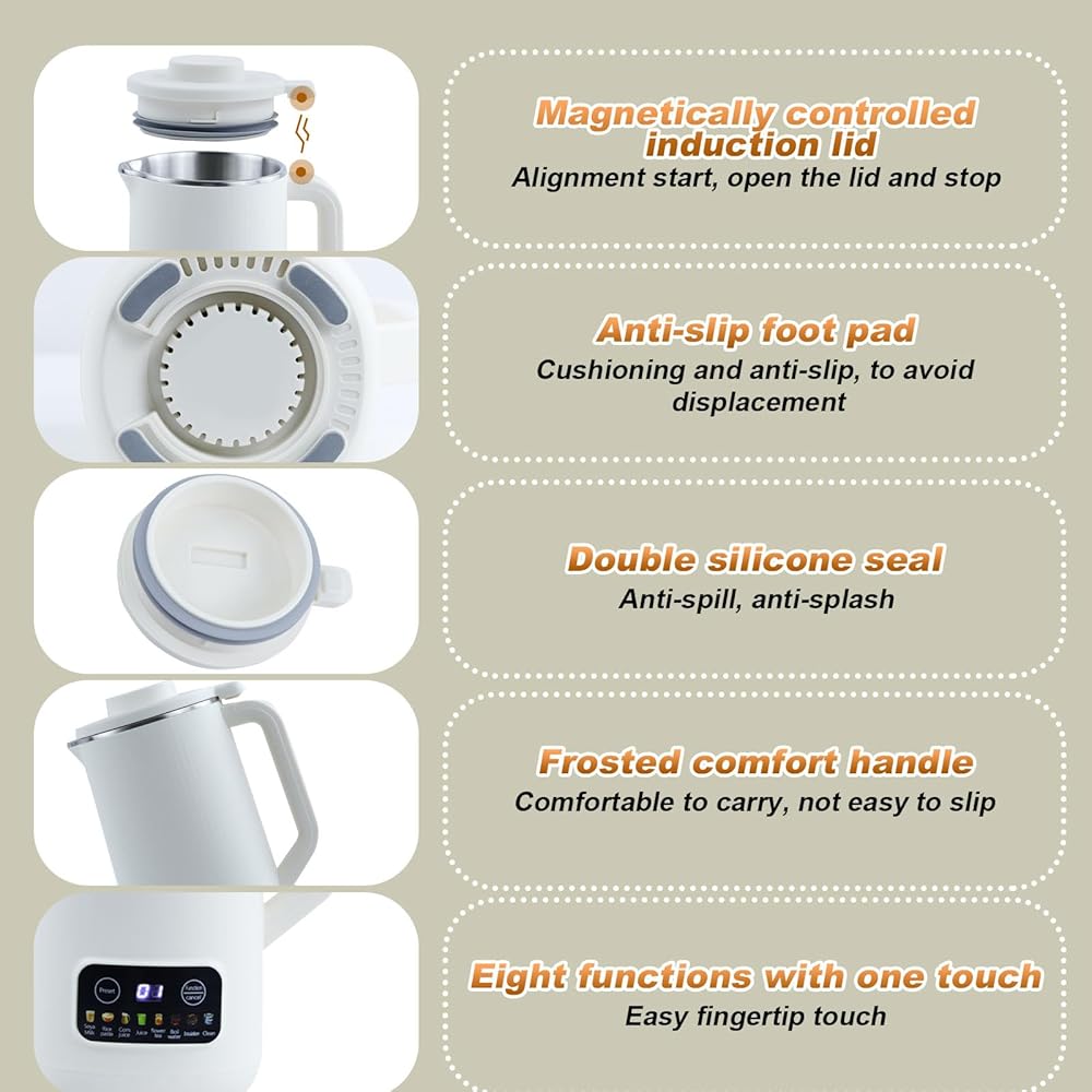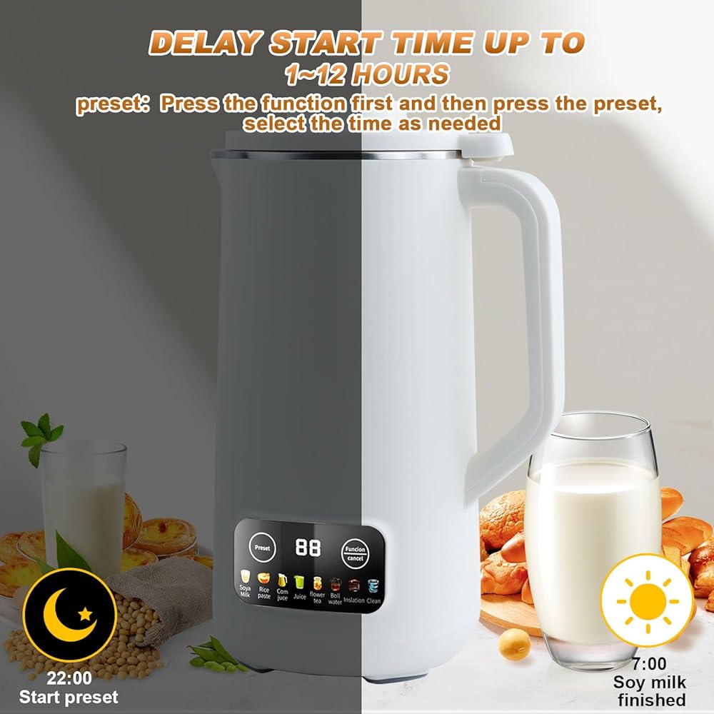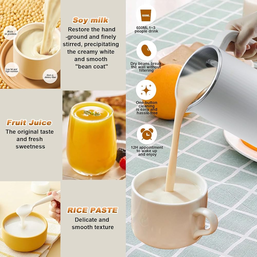 GAESHOW Machine à Lait de Noix, 600ml Machine Automatique à Lait de Soja, avec Démarrage Différé/Maintien au Chaud/Autonettoyant et Autres Fonctions, avec 10 Lames de Feuilles, Acier Inoxydable 304 : Cuisine et Maison