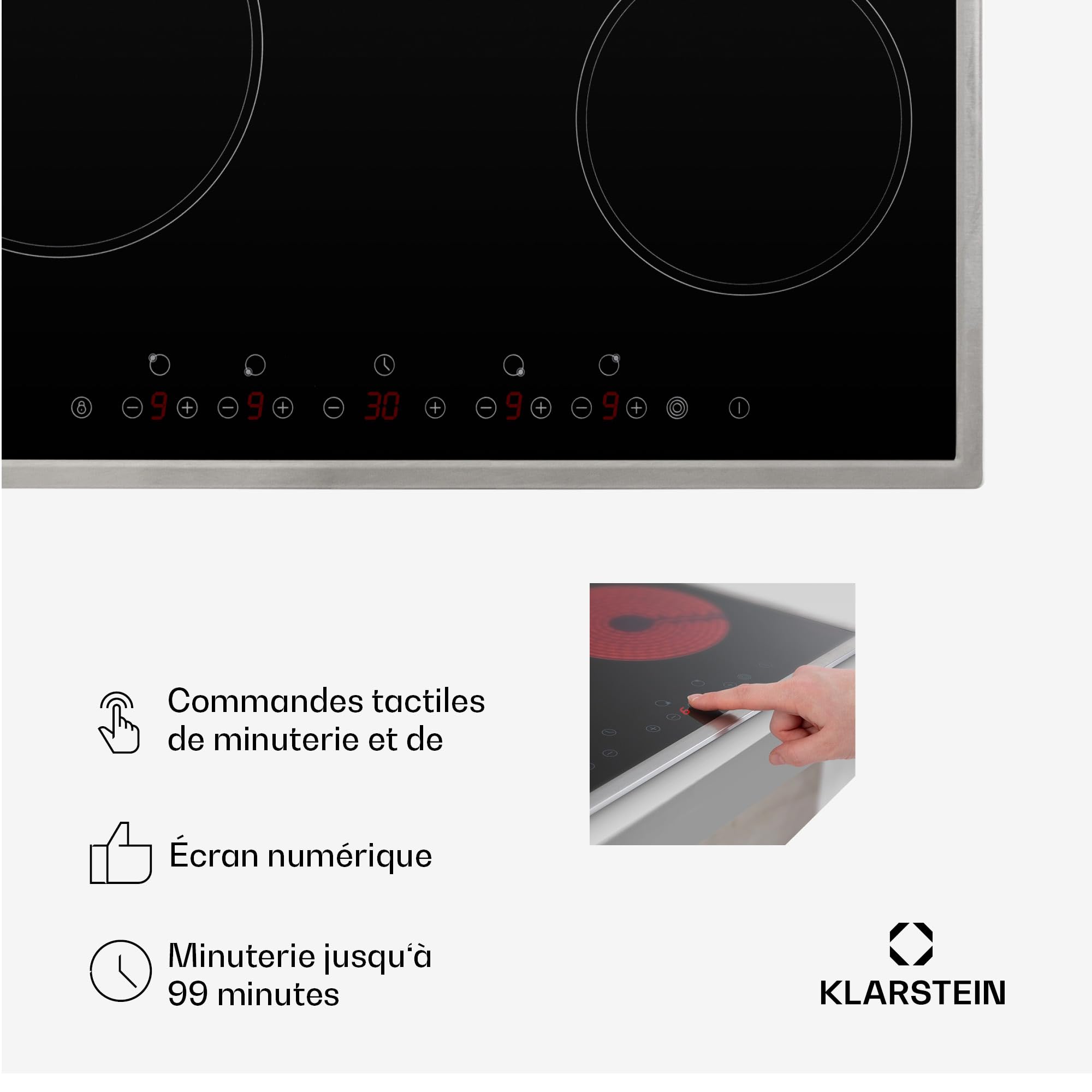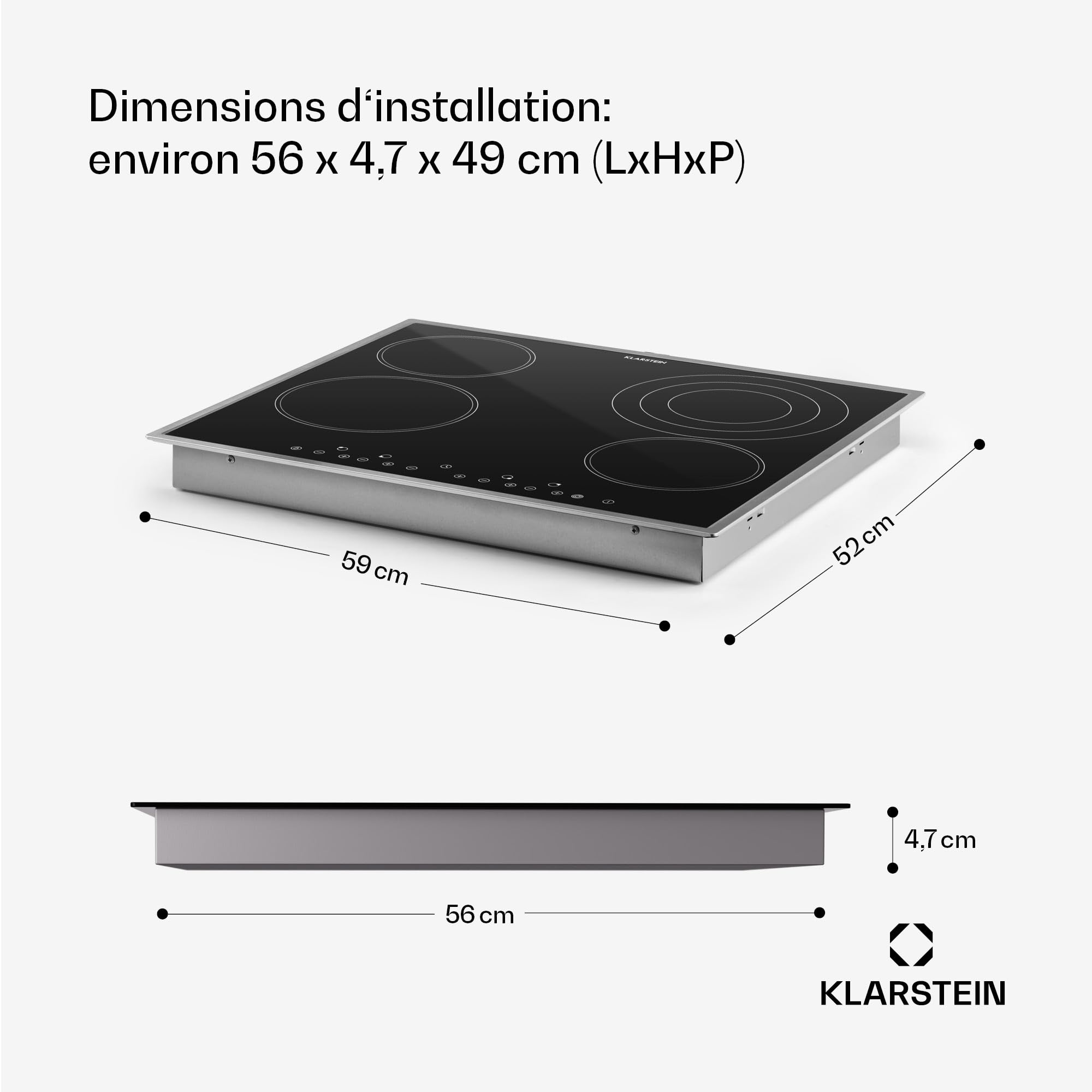 Klarstein Plaque Vitrocéramique Encastrable 6500W, Table de Cuisson Induction 4 Feux, Contrôle Tactile, Table de Cuisson Électrique 4 Foyers