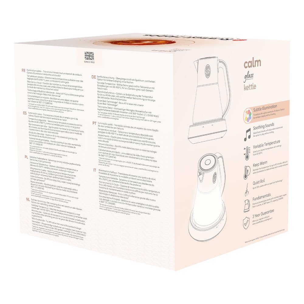 Russell Hobbs Bouilloire en verre [1,7L, température réglable 40-100°] Calm (éclairage intérieur & son apaisant, Technologie Quiet-Boil, maintien au chaud, écran numérique & tactile, 2400W) 27450-70 : Cuisine et Maison