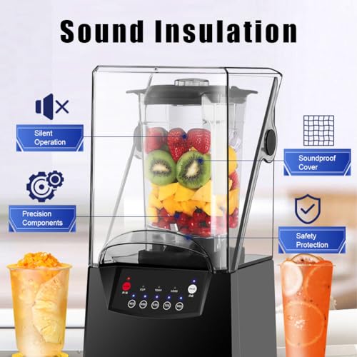 Mélangeur Commercial Silencieux, Machine de Cuisson à paroi cassée silencieuse de 1000 W avec récipient de 2 L, Machine à Smoothie de mélangeur de 17 000 TR/Min avec Moteur en cuivre Pur pour : Cuisine et Maison