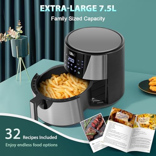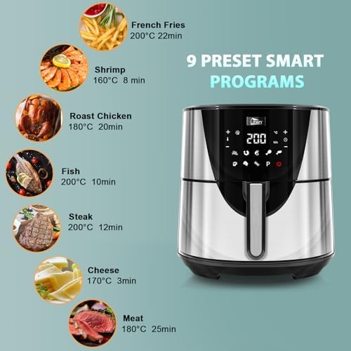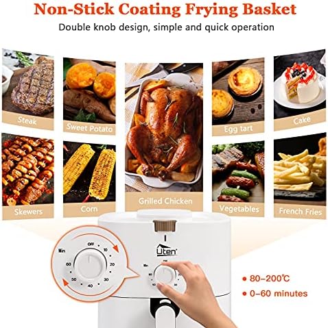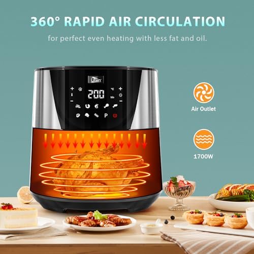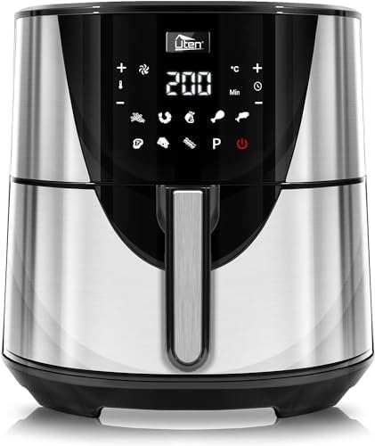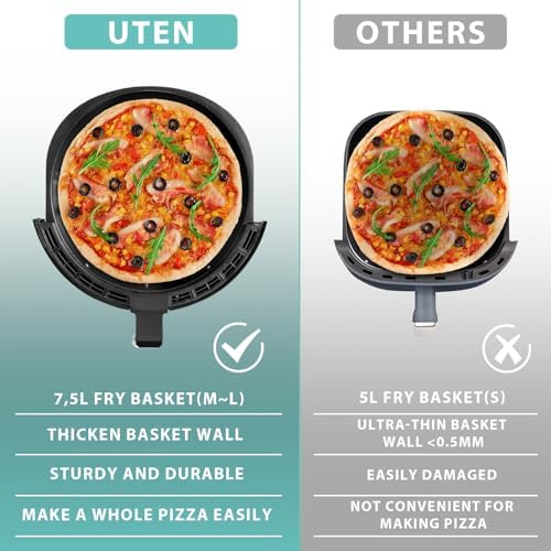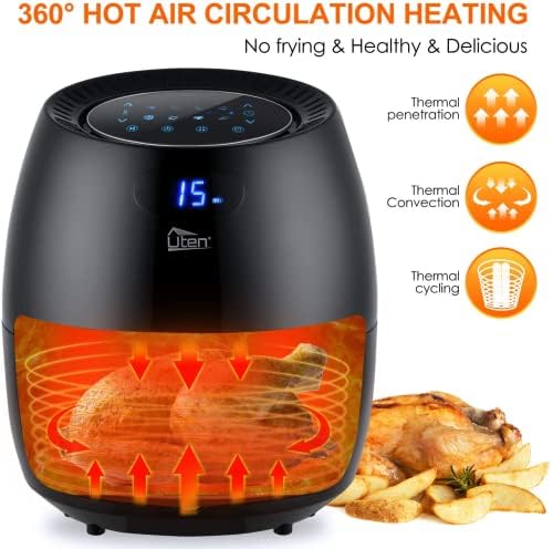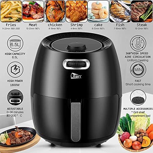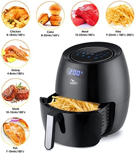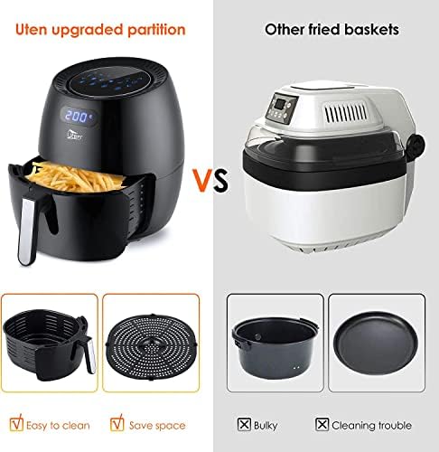 Friteuse Sans Huile, Uten Friteuse à Air 1800W, 6.5L Air Fryer 2 à 8 personnes, Panneau Tactile LED avec 8 Programmes, Paniers Antiadhésifs, Sans BPA/PFOA : Cuisine et Maison