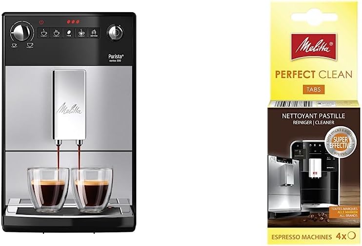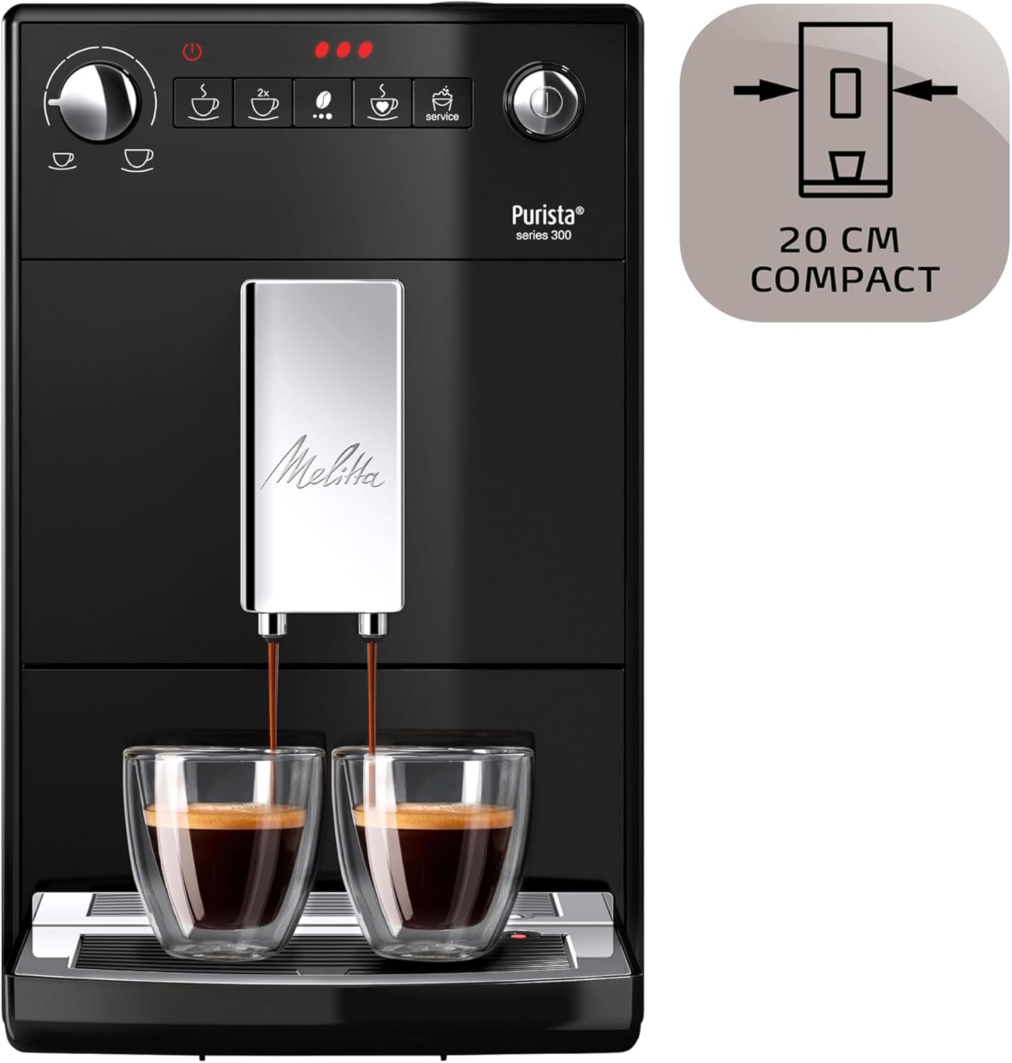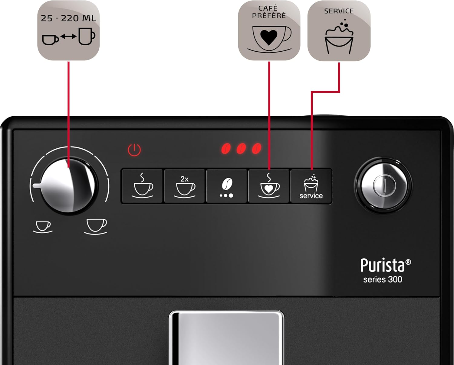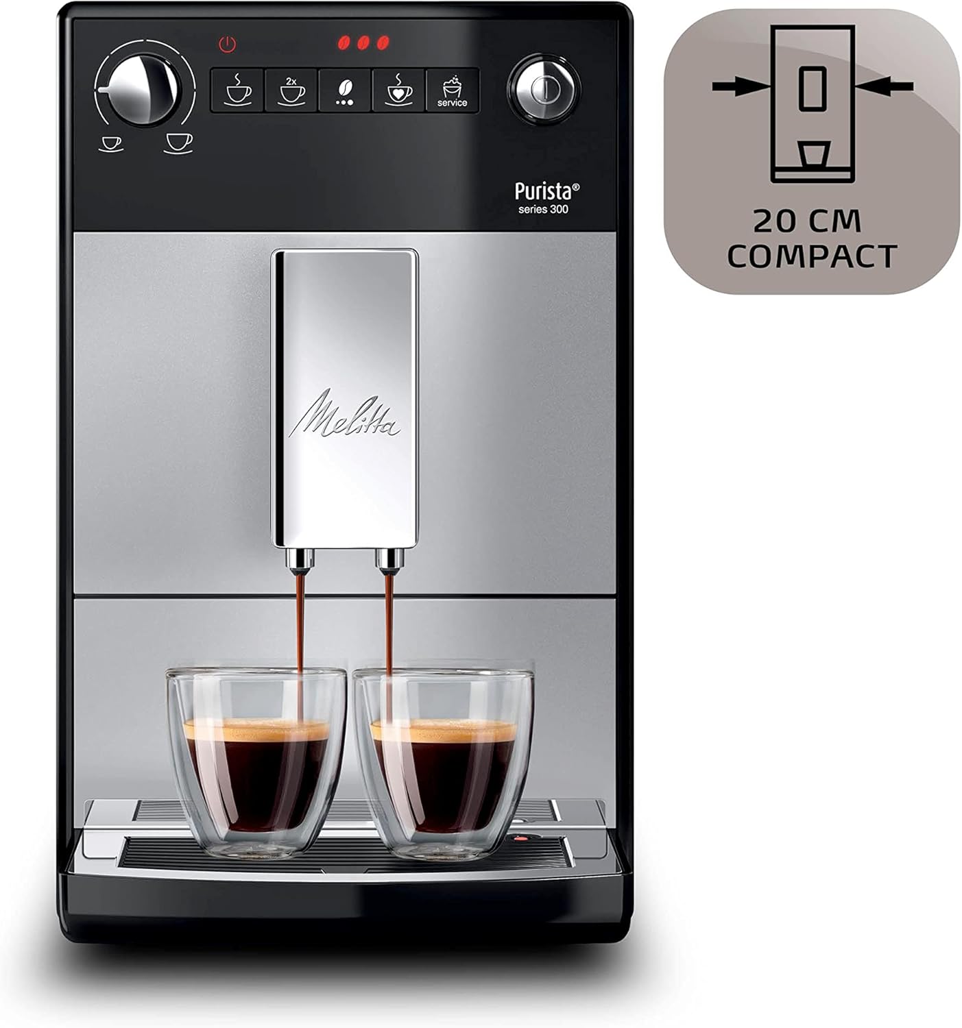 Melitta, Purista, Argent, F230-101 Machine à Café et Expresso 1L Automatique avec Broyeur à Grains, Compacte, Silencieuse