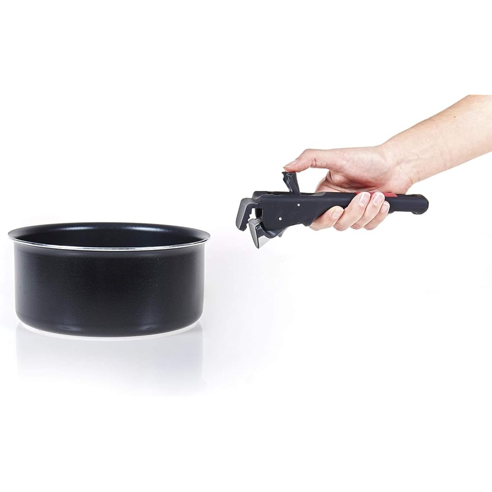 Sitram 712382, Batterie de cuisine 7 pièces : 3 casseroles + 3 poêles + 1 poignée amovible - Aluminium pressé - Tous feux dont induction, Noir : Cuisine et Maison