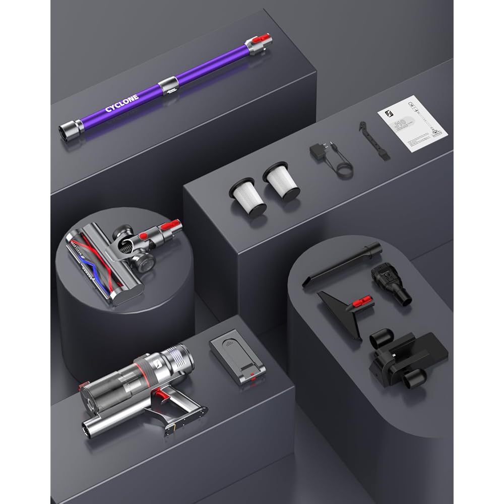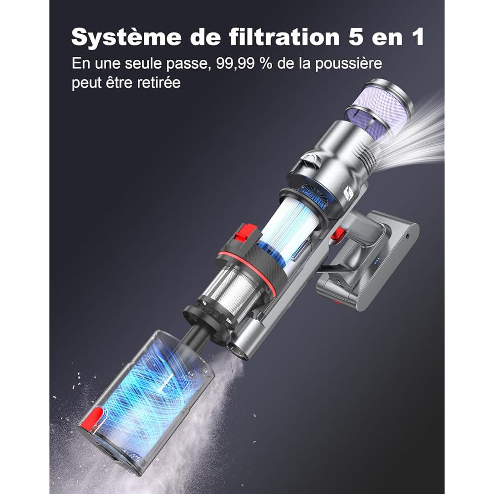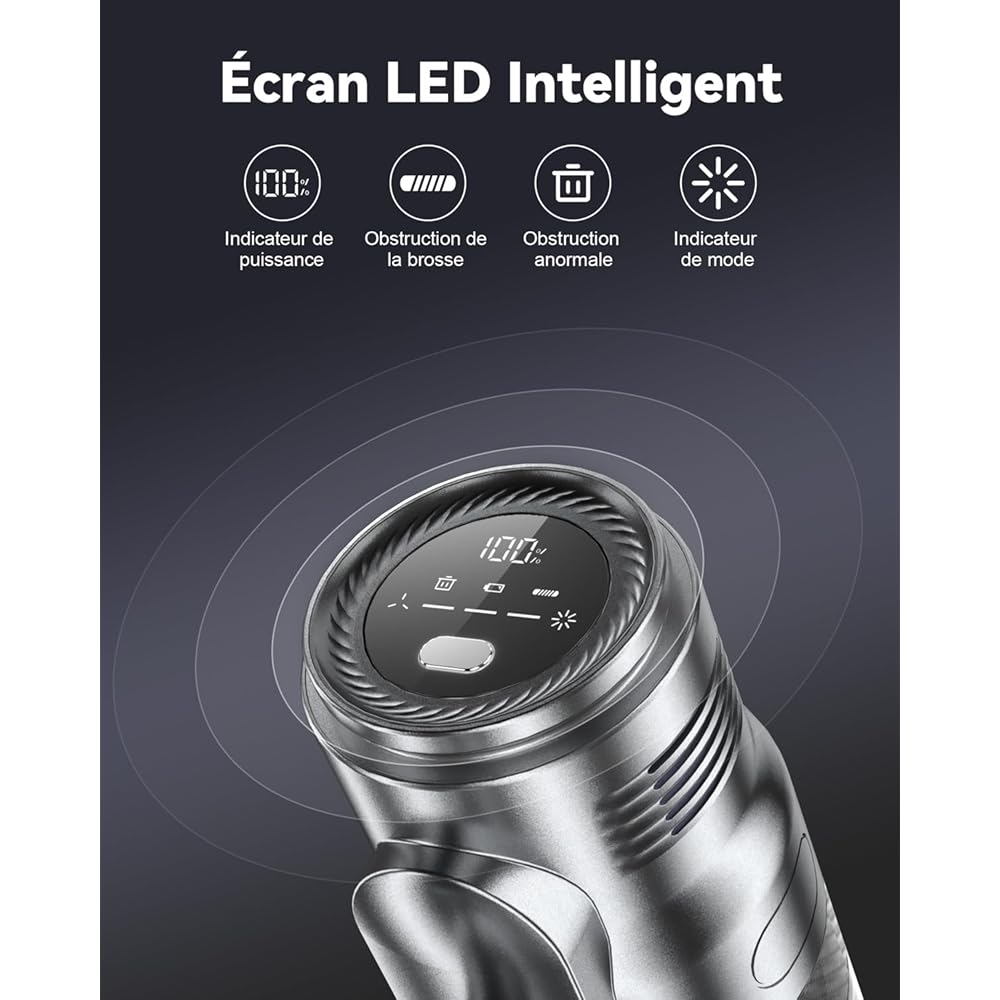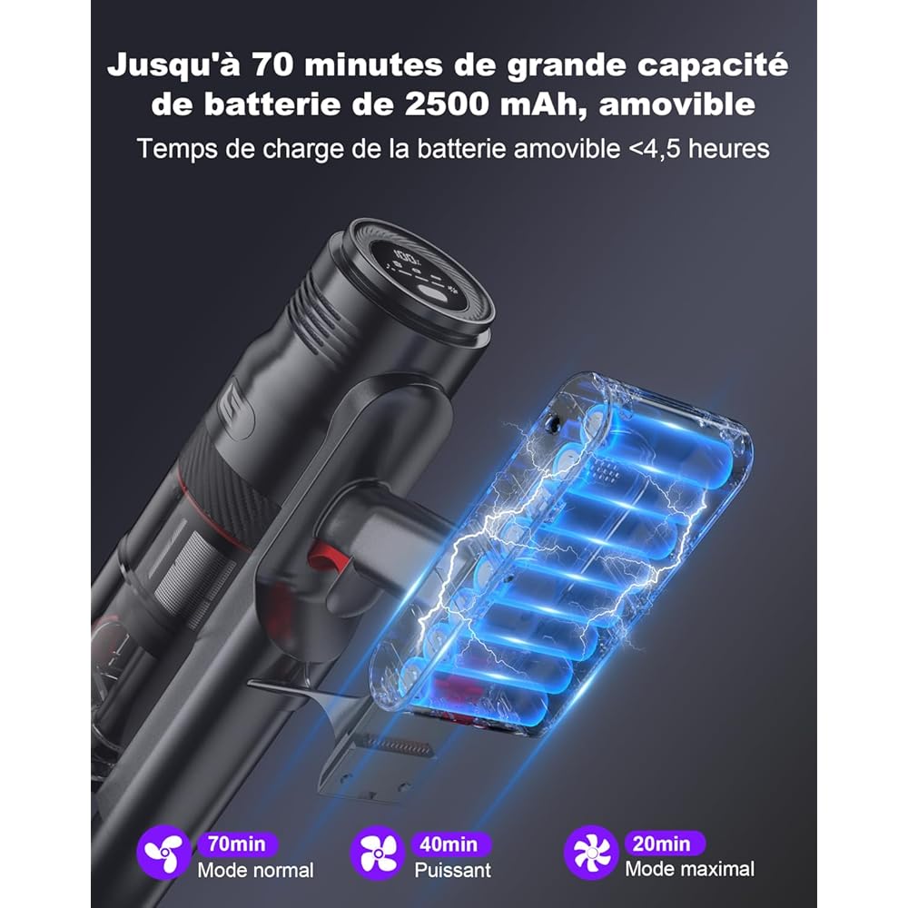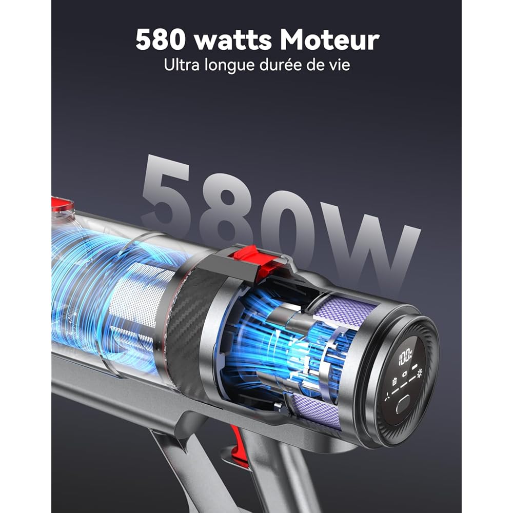 aujun J10 Aspirateur Balai sans Fil 580W 48kPa, 70 Mins Aspirateur Puissant avec Écran Tactile Intelligent, Brosse Anti-Emmêlement, Chargement Mural pour Tapis Sol Dur Poils Animaux : Cuisine et Maison