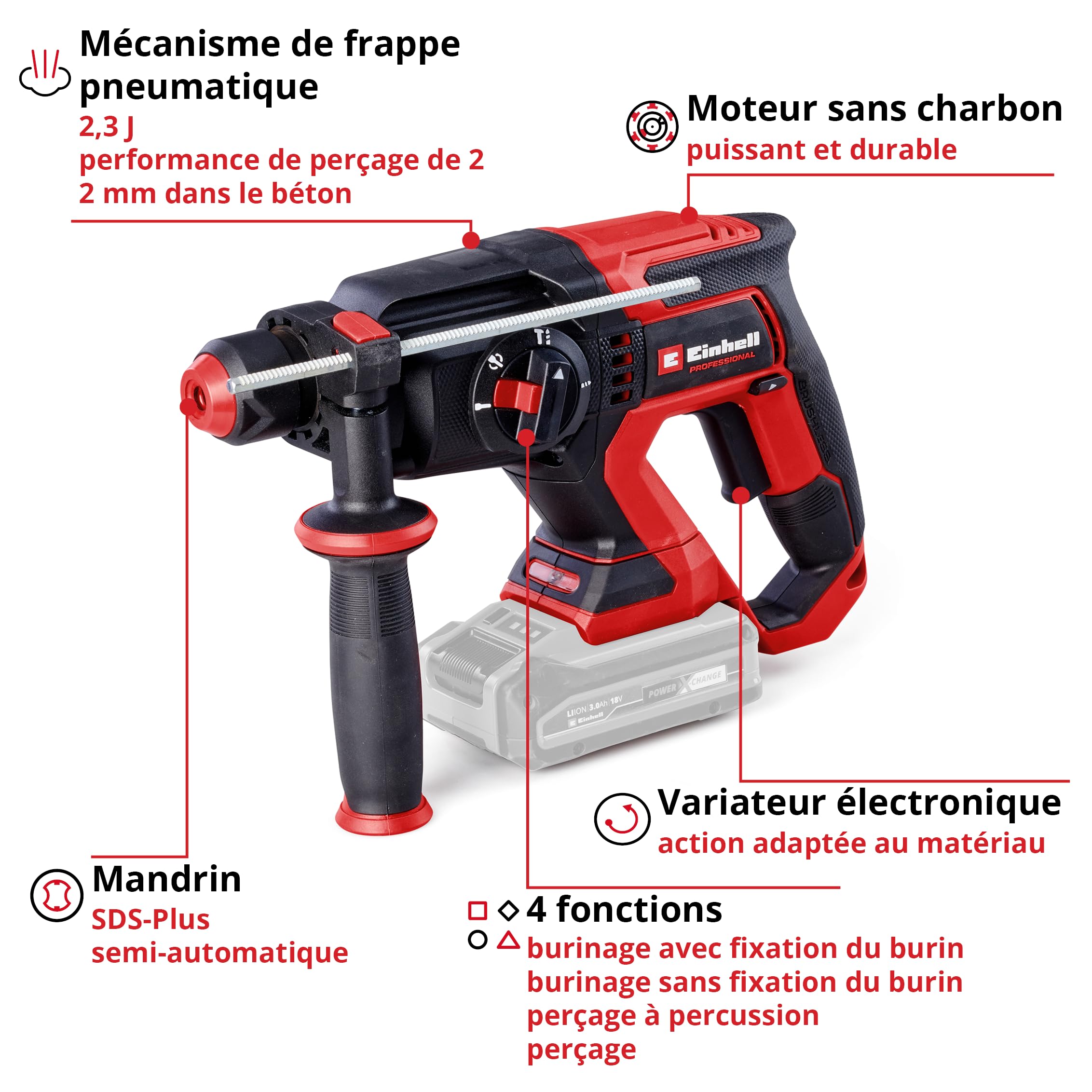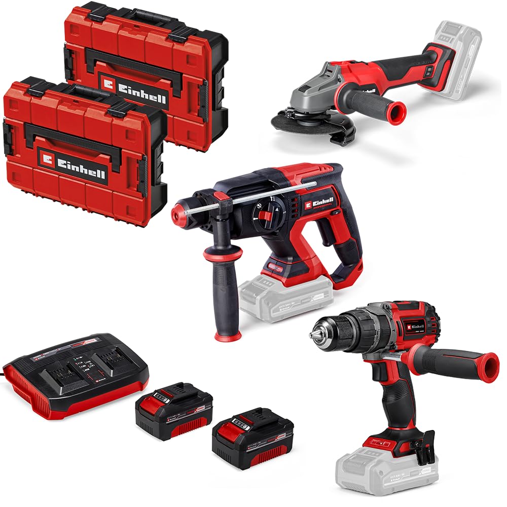 Einhell Professional Pack 3 machines sans fil BL - Power X-Change (Meuleuse d'angle, Marteau perforateur, Perceuse-visseuse percussion) + Twincharger